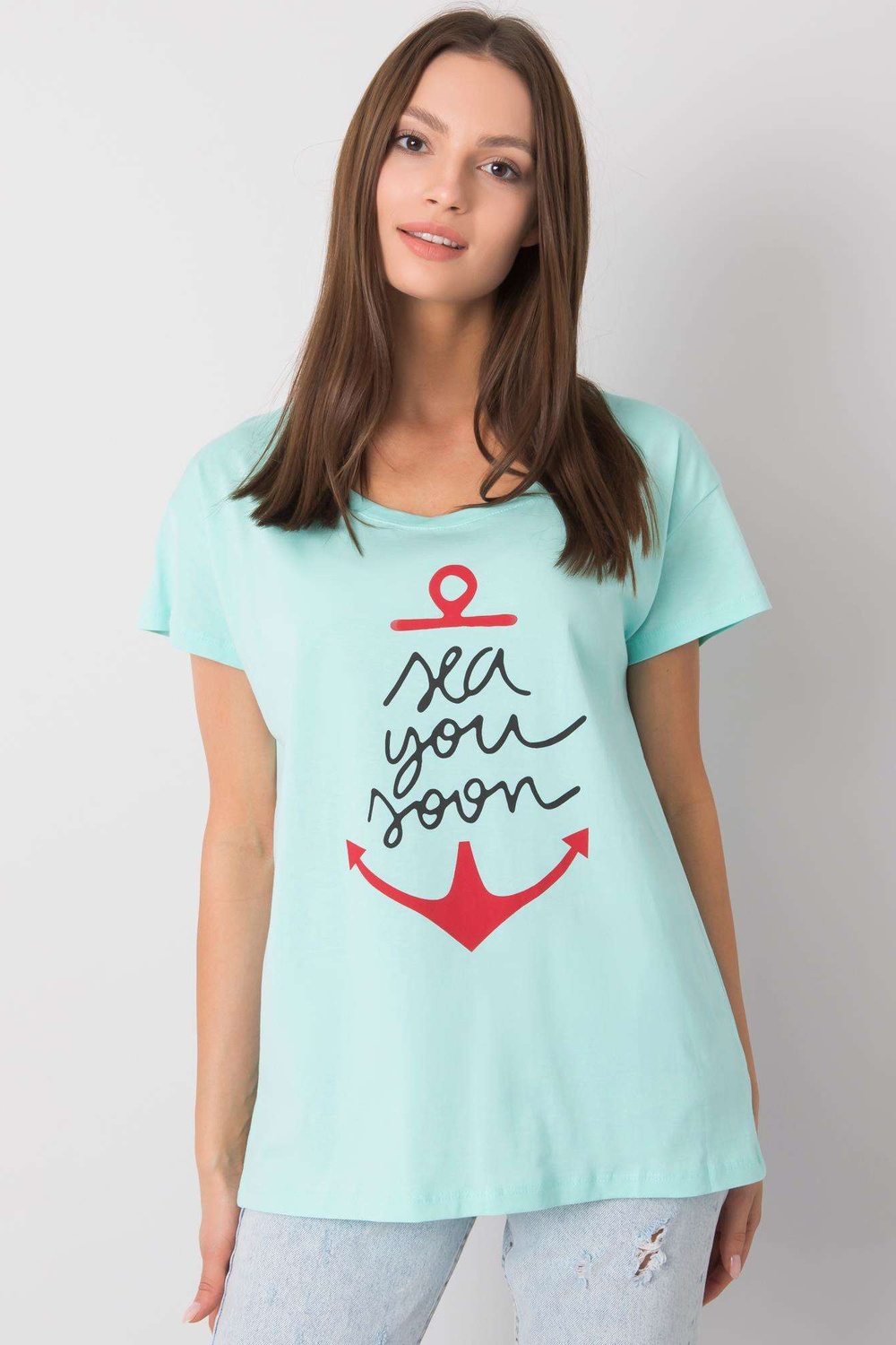 Mėtinės spalvos marškinėliai su Silva raštu.