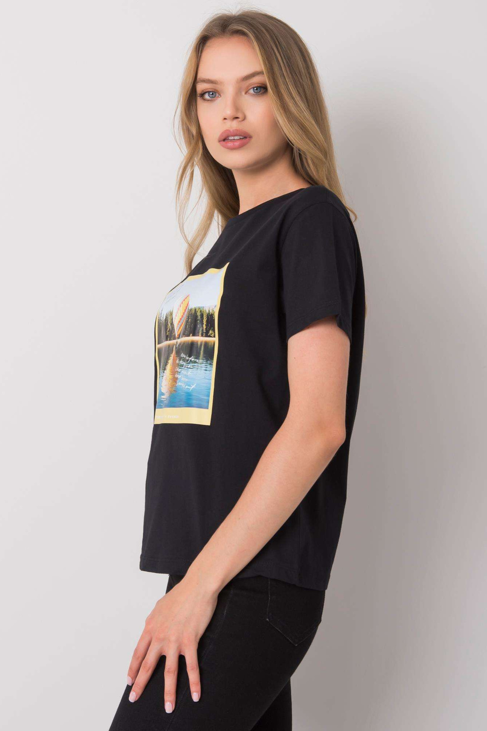 Juodi marškinėliai su Solly raštu.