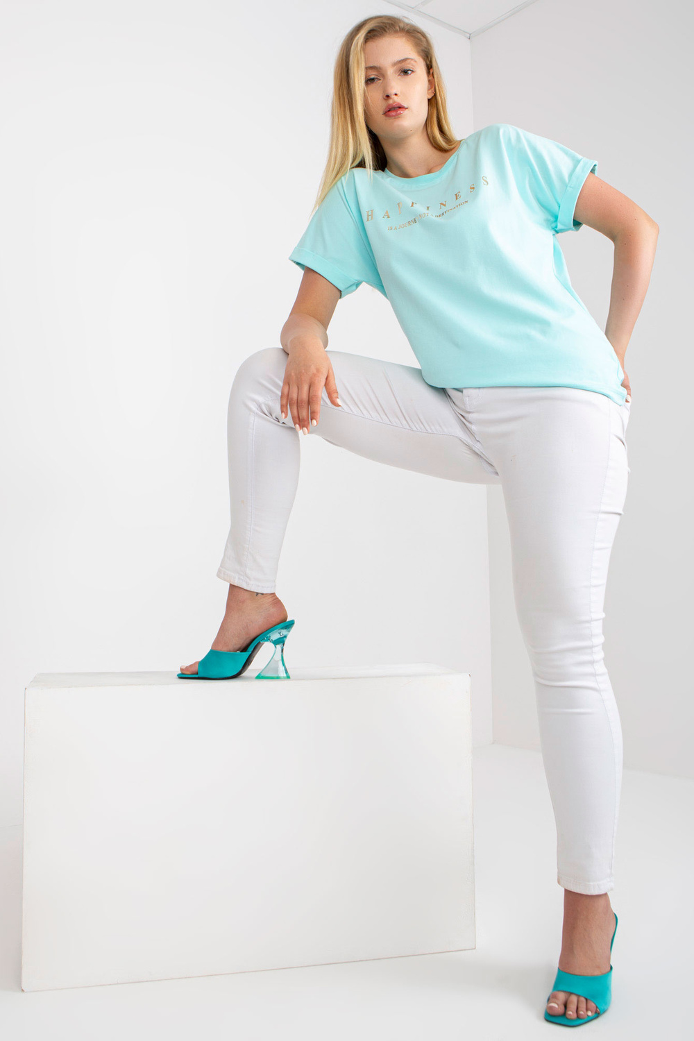 Mėtų plius dydžio marškinėliai su auksinėmis raidėmis