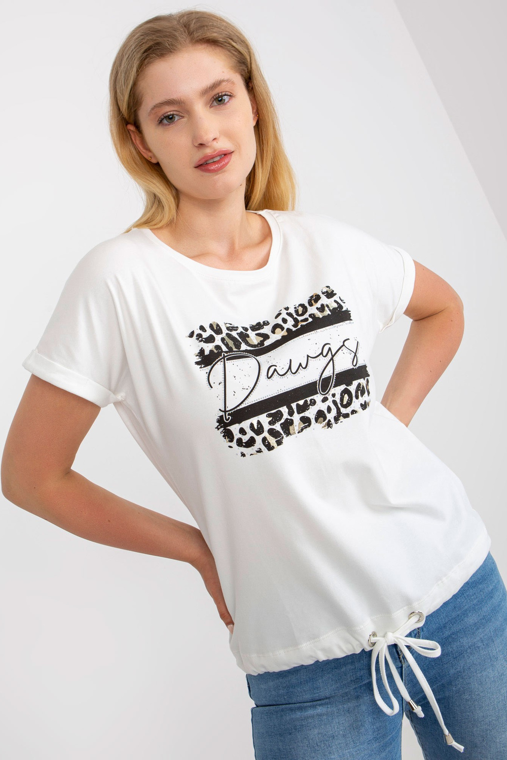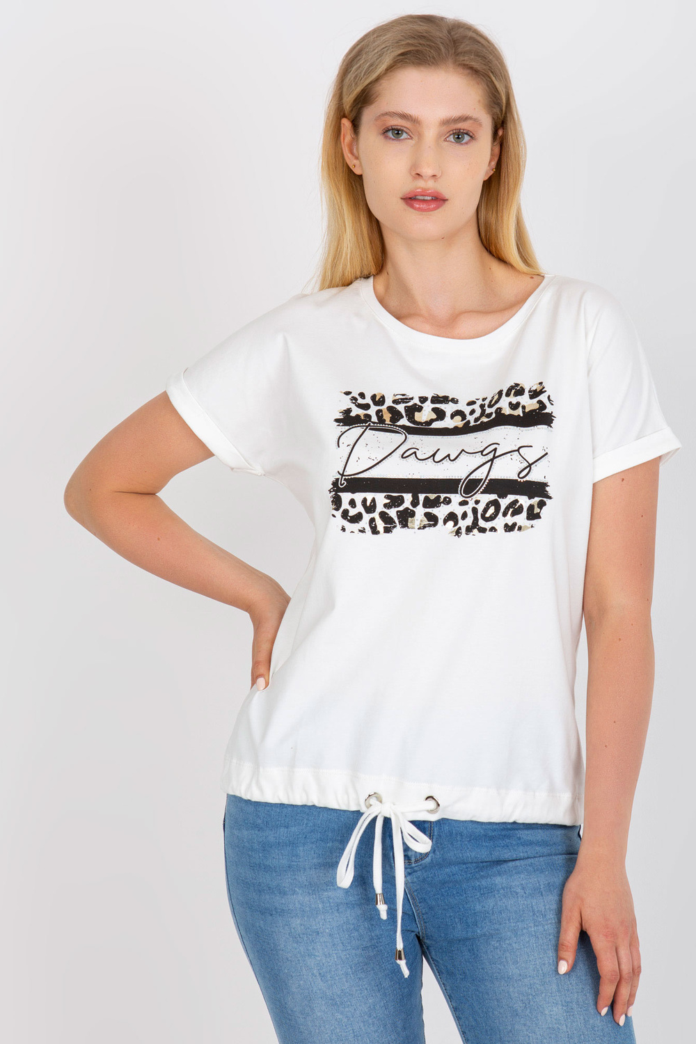 Whiteplus dydžio medvilniniai marškinėliai su apvalia iškirpte.