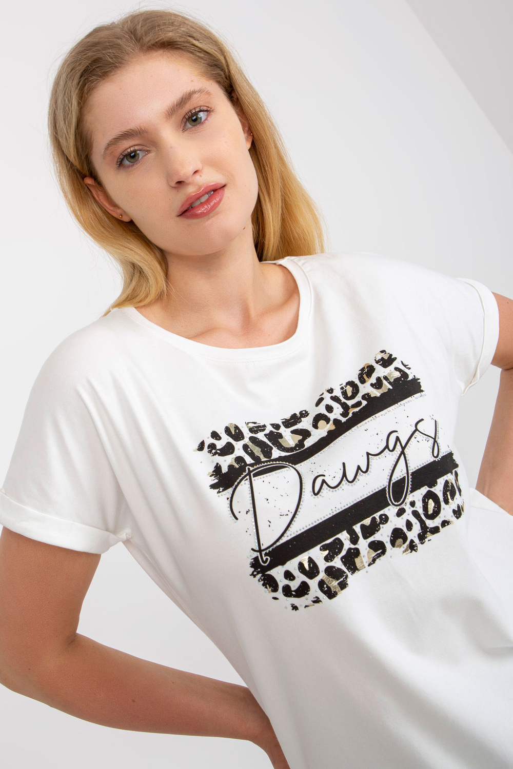 Modelis dėvi vieno dydžio. Modelio matmenys: aukštis 175 cm, krūtinė 90 cm, juosmuo 71 cm, klubai 100 cm.