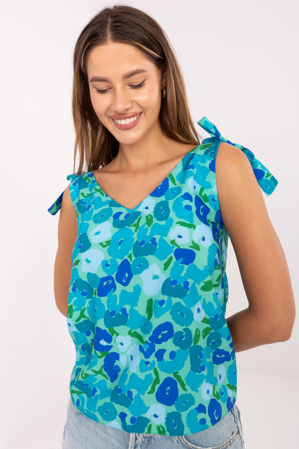 Žalia ir mėlyna viršūnė su V RUE PARIS iškirpte .