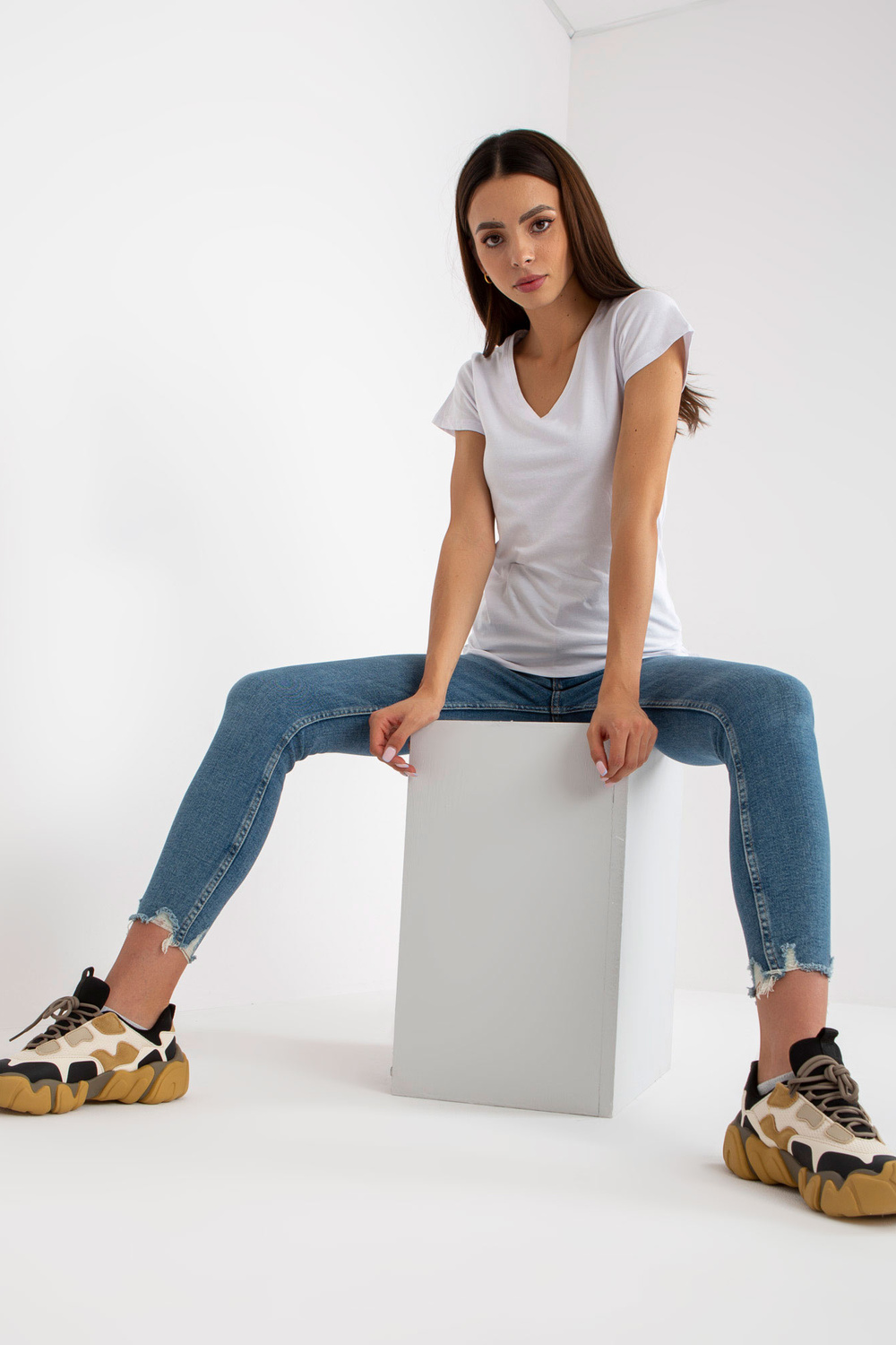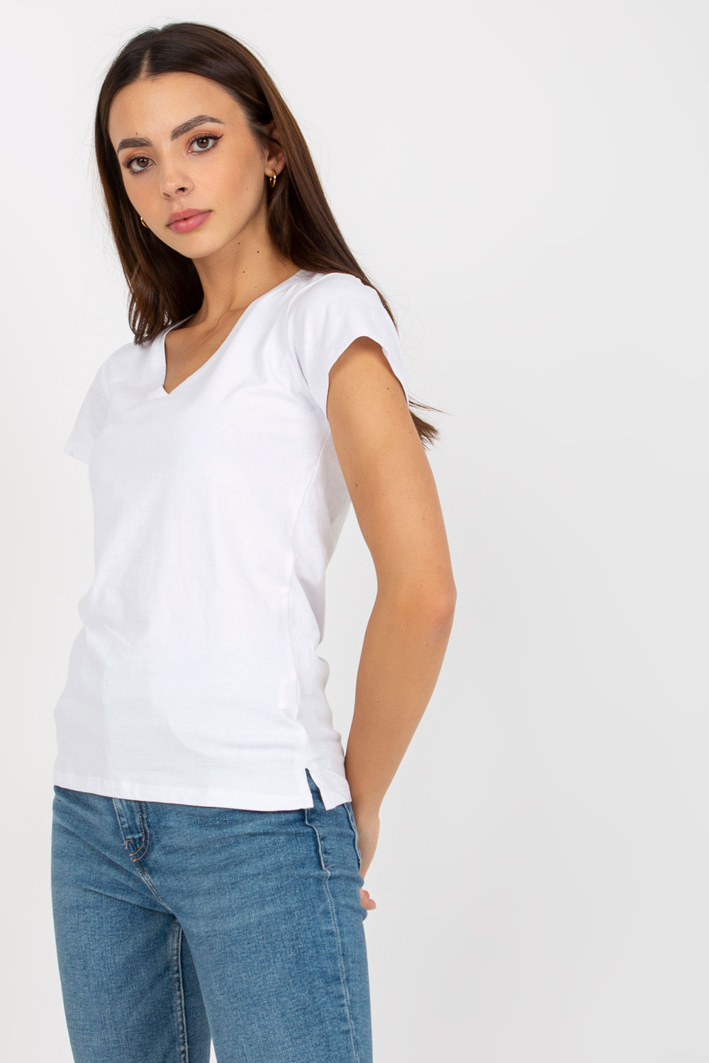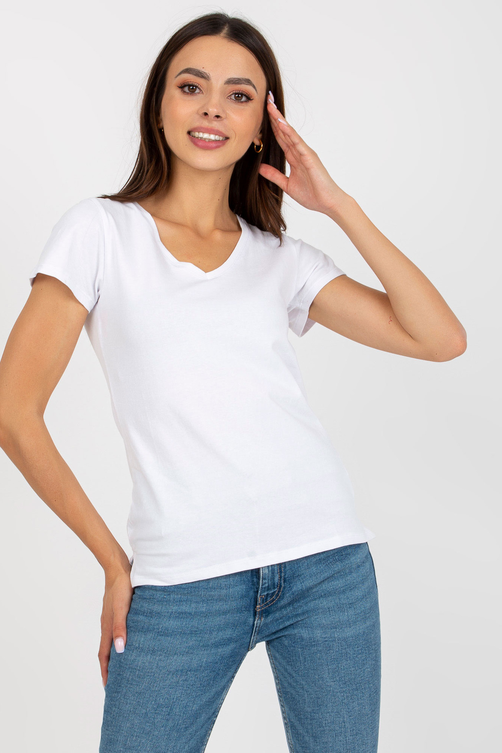 Balti paprasti marškinėliai V formos iškirpte. medžiagos sudėtis: 95% medvilnė, 5% elastanas skalbimo būdas: skalbimas mašina 30°C temperatūroje
