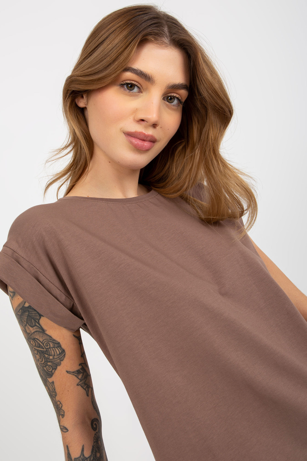 Rudos spalvos vienspalviai pagrindiniai marškinėliai iš medvilnės Revolution. Prekės kodas: RV-TS-4833.36X dominuojantis raštas: be rašto Stilius: laisvalaikio proga: kasdieninis, miestui, darbui, vasarai Modelis dėvi S dydį. Modelio matmenys: ūgis 173 cm, krūtinė 7div>
