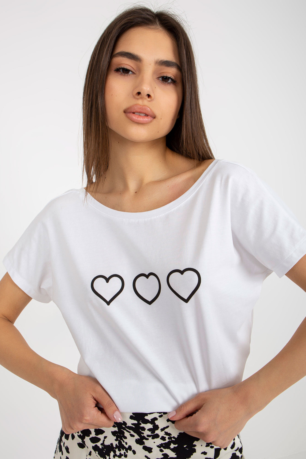 Balti ir juodi laisvi marškinėliai su raštu Amor RUE PARIS.