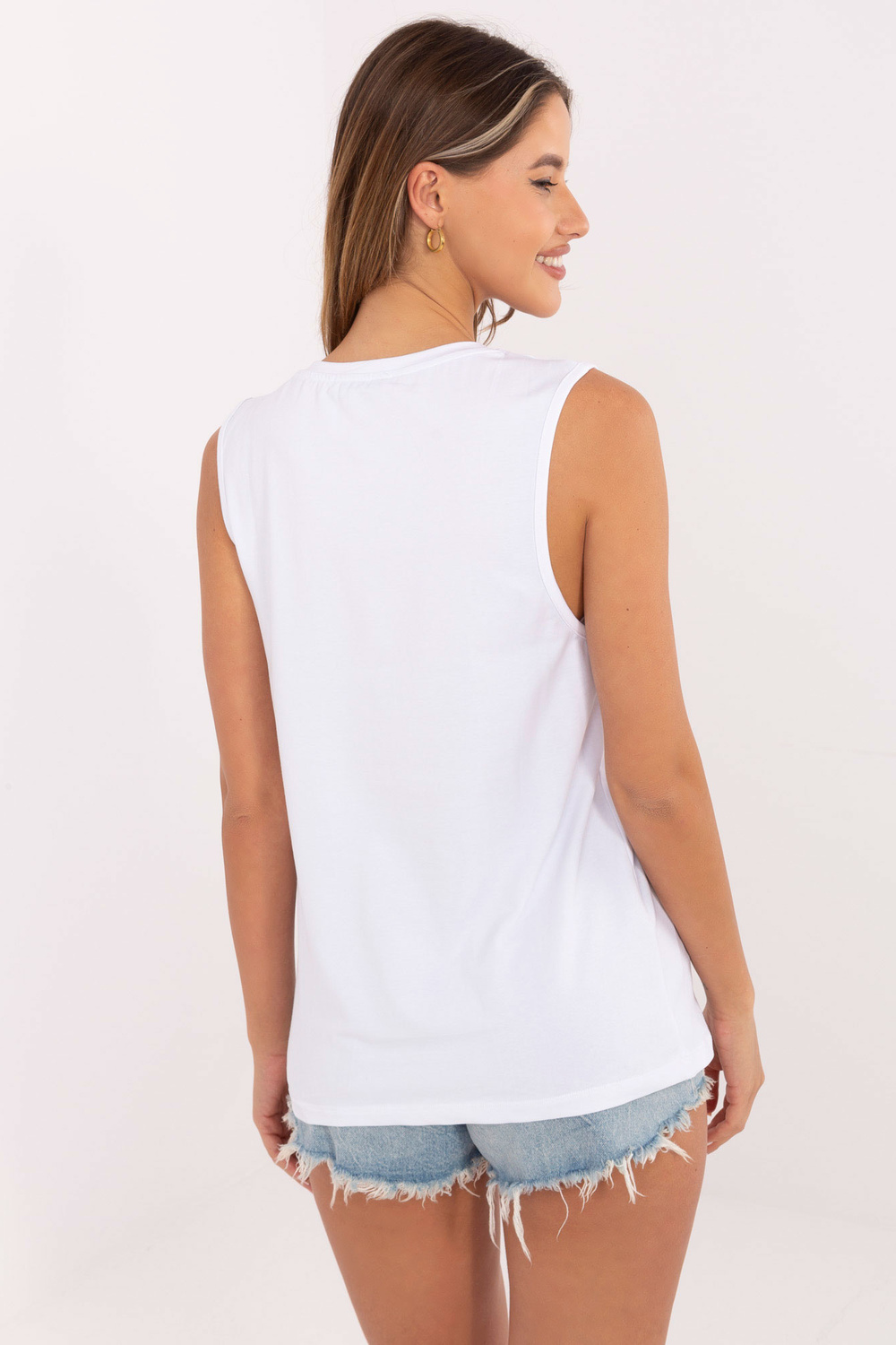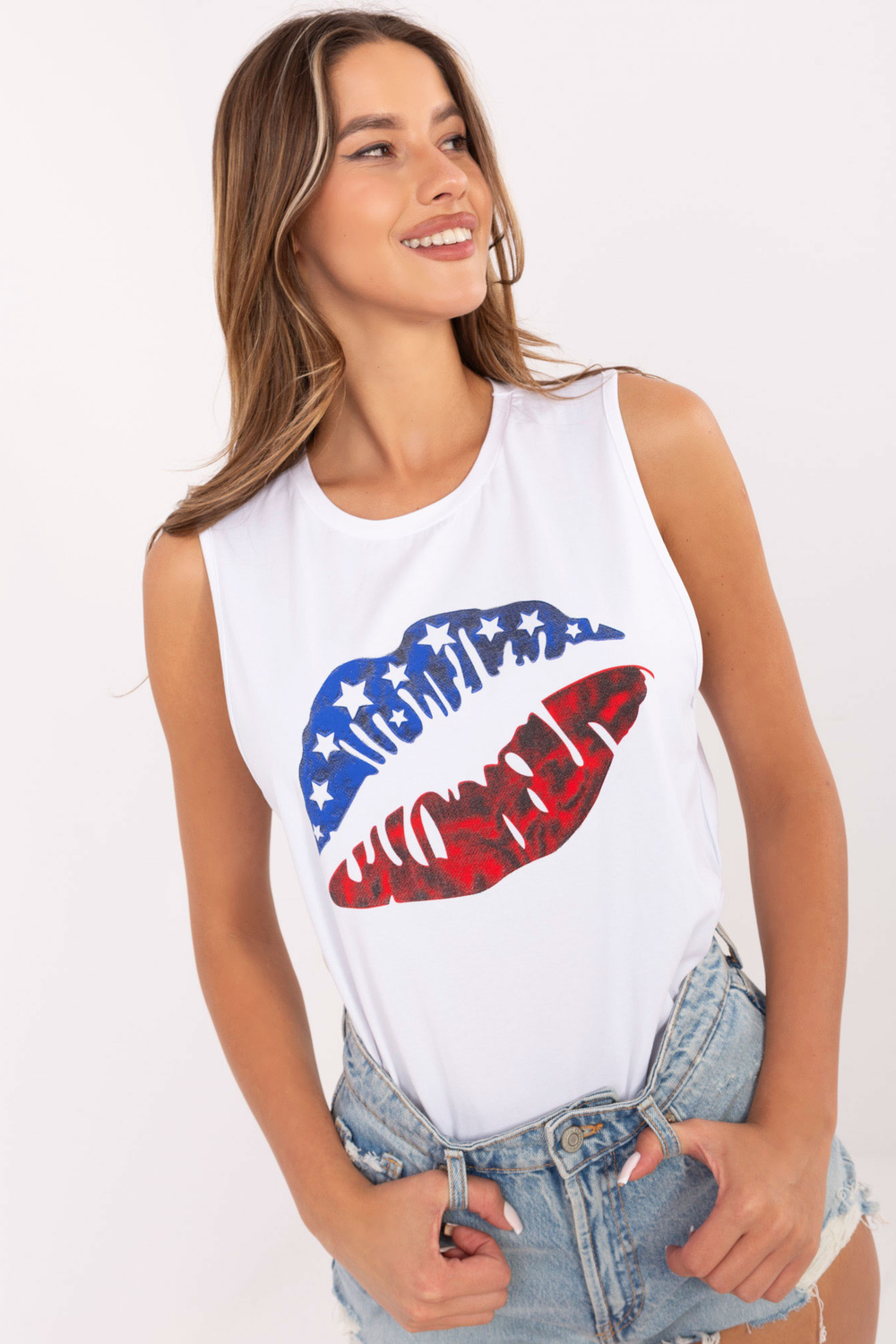 Baltas viršus su Candela RUE PARIS spaudiniu .