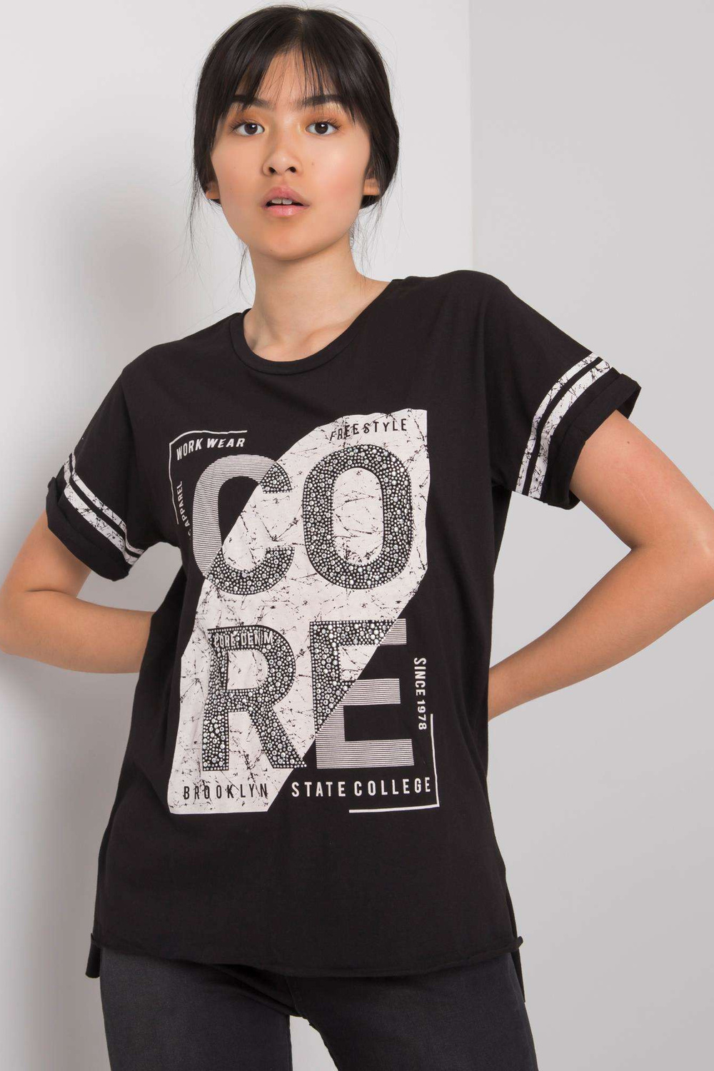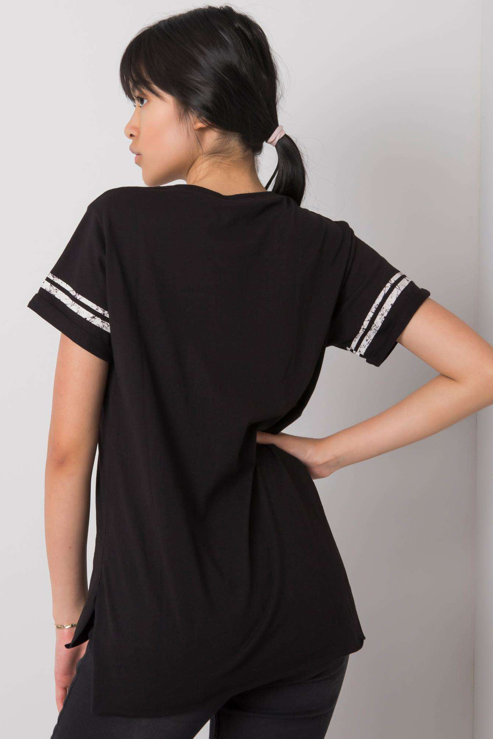 Juodi marškinėliai su gintaro raštu.