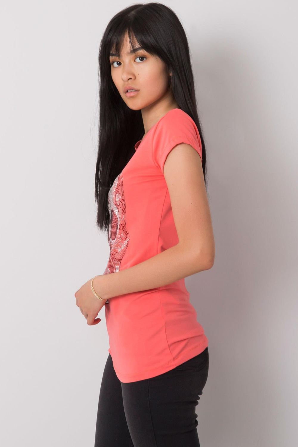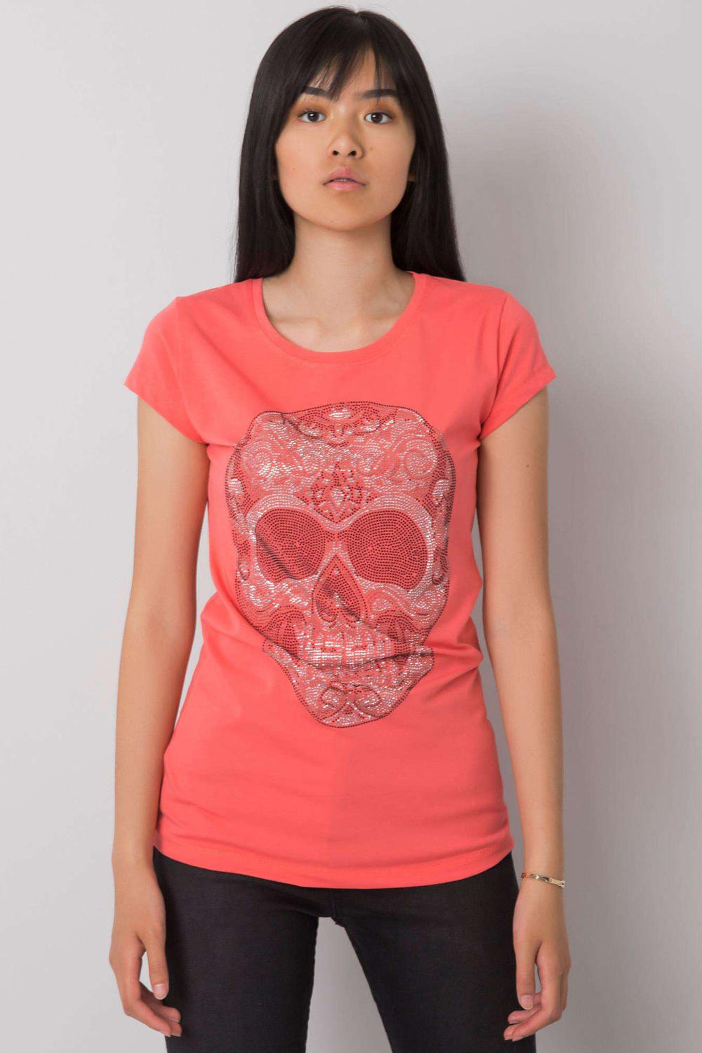 Koralto marškinėliai su kaukolės programa.
