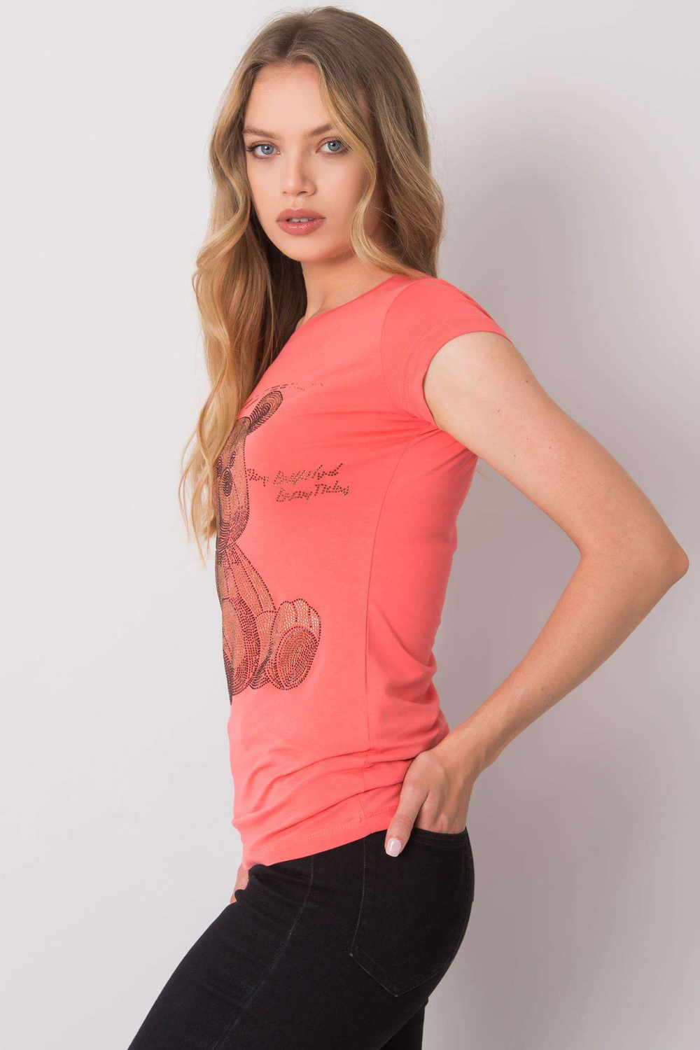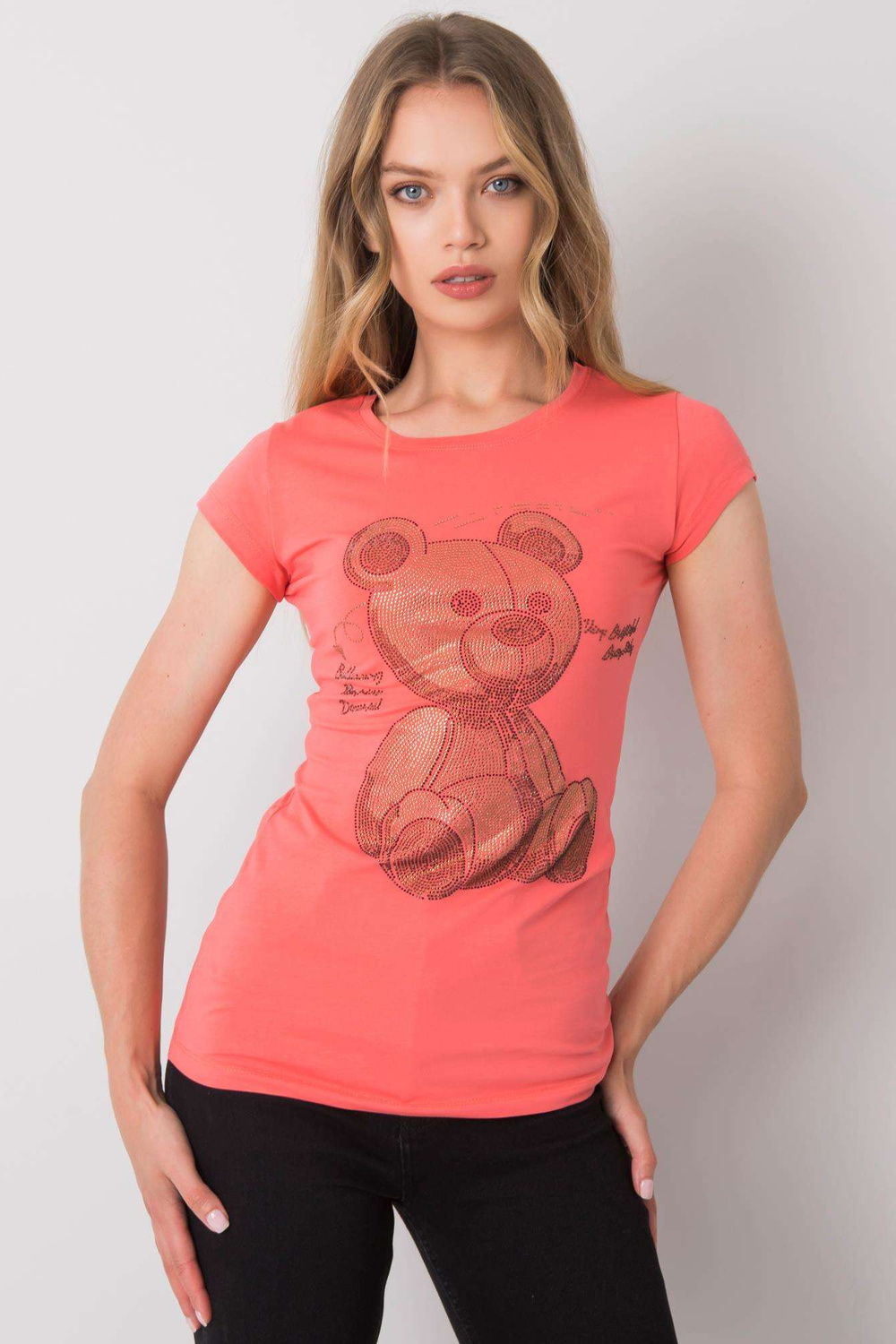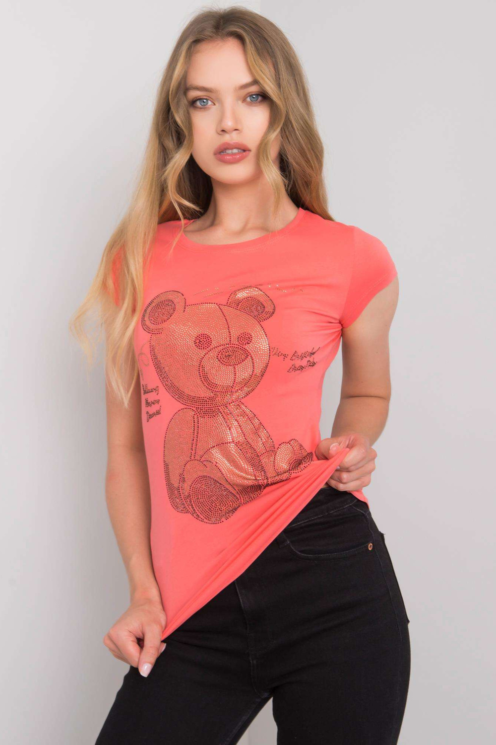 Koralto marškinėliai su Misha aplikacijomis. priedai: kalnų krištolas medžiagasudėtis: 90% medvilnė, 10% elastanas skalbimo būdas: skalbimas mašinoje 30°C Modelis dėvi S dydį. Modelio išmatavimai: aukštis 174 cm, krūtinė 82 cm, juosmuo 62 cm, klubai 89 cm. Matmenys