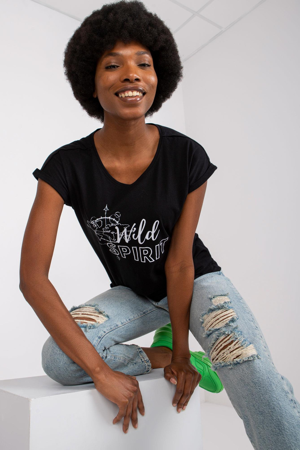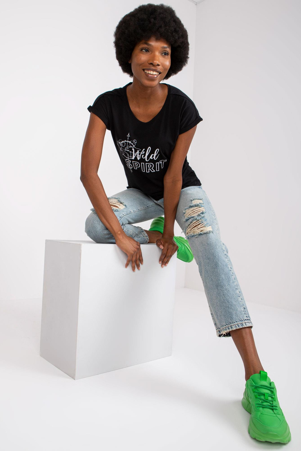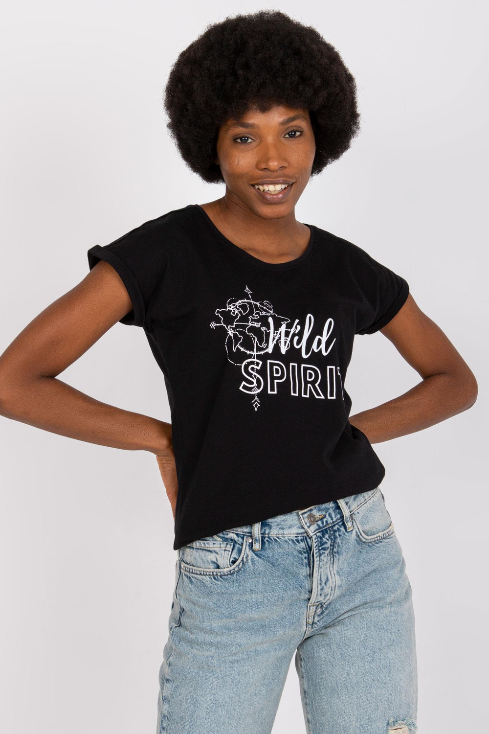 Juodi moteriški marškinėliai su raštu Cabrera MAYFLIES.