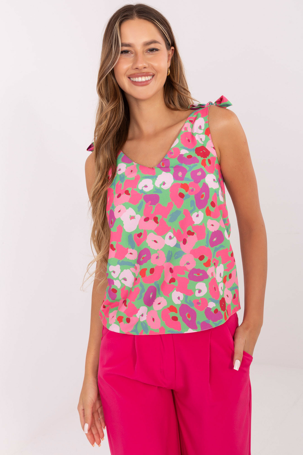 Žalia ir rožinė vasarinė viršūnė su raštais RUE PARIS .