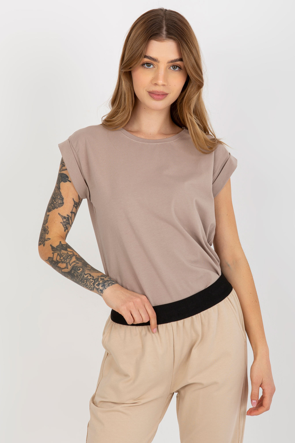 Tamsiai smėlio spalvos paprasti medvilniniai marškinėliai Revolution.