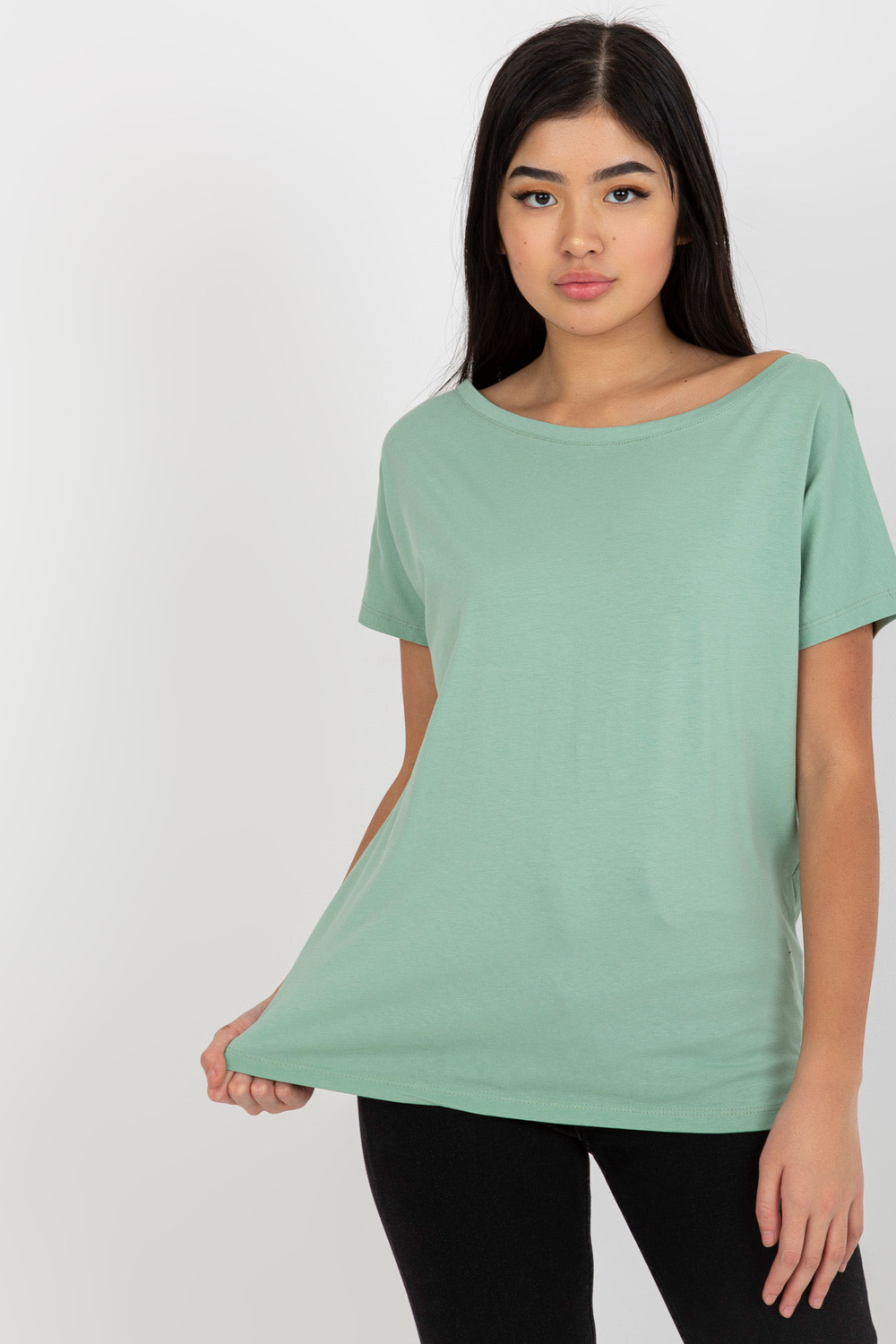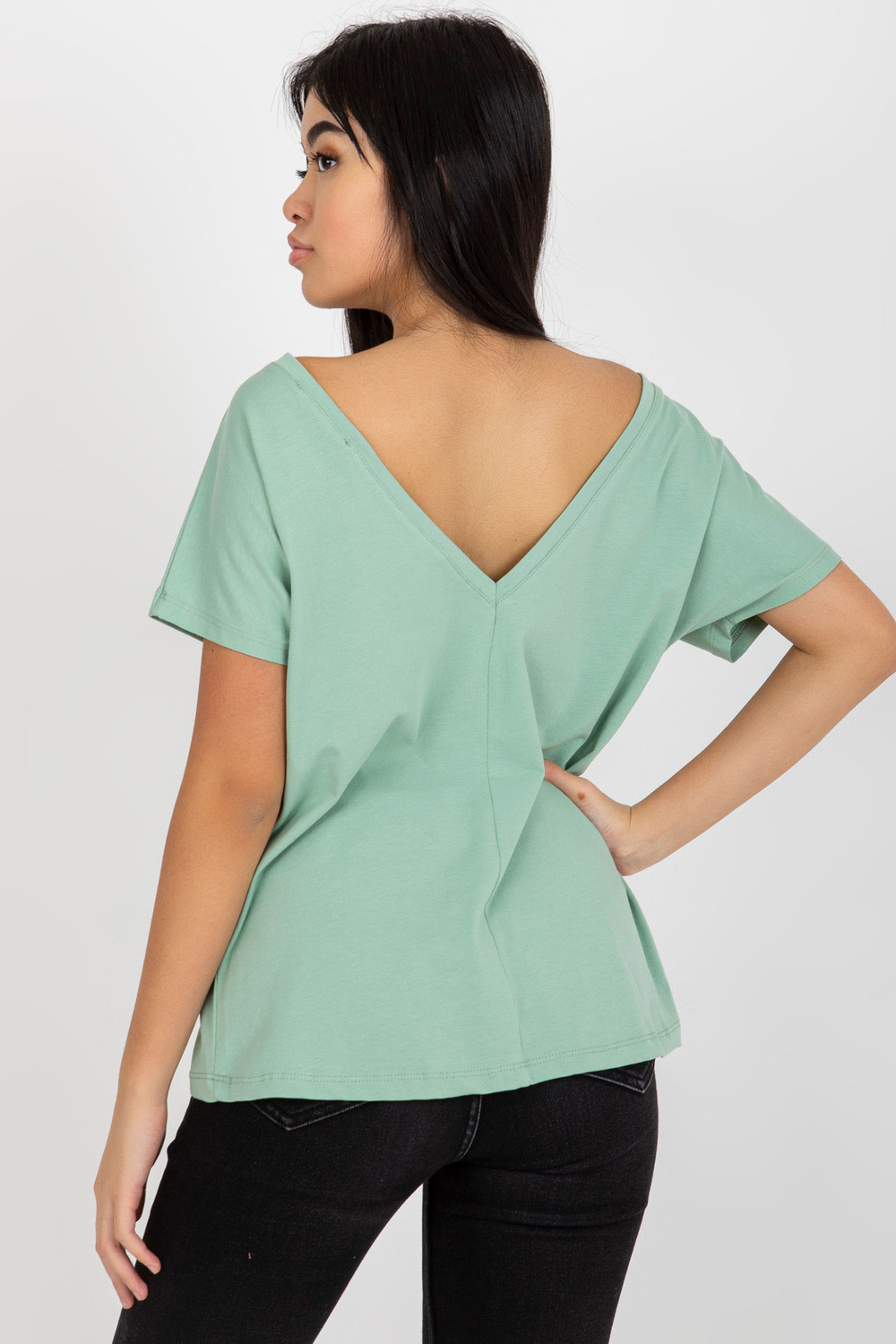 Paprasti pistacijų marškinėliai su kaklu nugaroje Fire. Prekės kodas: RV-TS-4662.48 dominuojantis raštas: be rašto Stilius: laisvalaikio proga: kasdieninis, miestui, pasivaikščiojimui, vasarai Modelis dėvi S dydį. Modelio išmatavimai: ūgis 167 cm, krūtinė