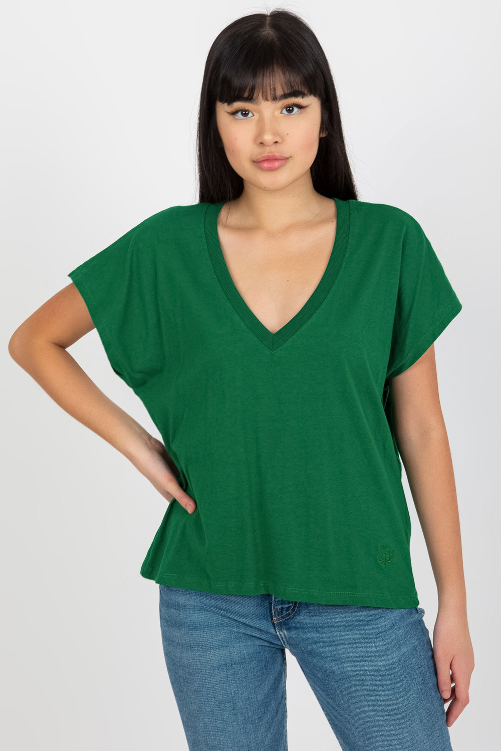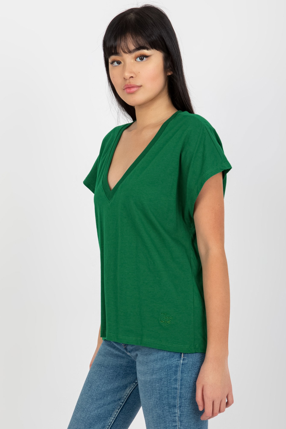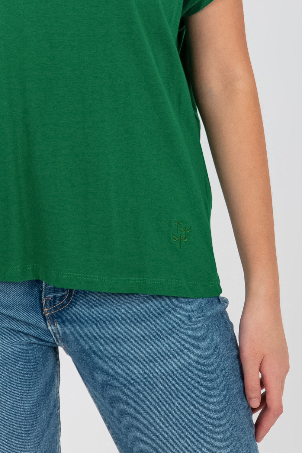 Žali moteriški marškinėliai su V iškirpte MAYFLIES.