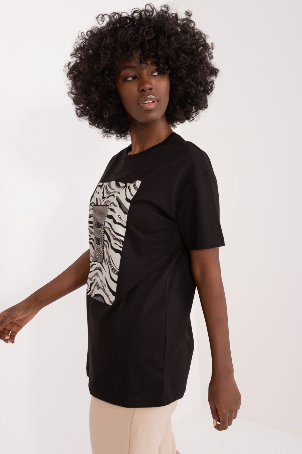 Modelis dėvi S dydį. Modelio išmatavimai: ūgis 168 cm, krūtinė 82 cm, juosmuo 62 cm, klubai 93 cm.