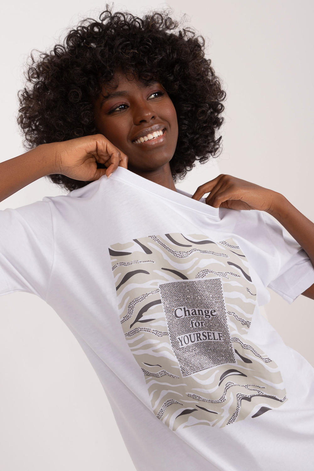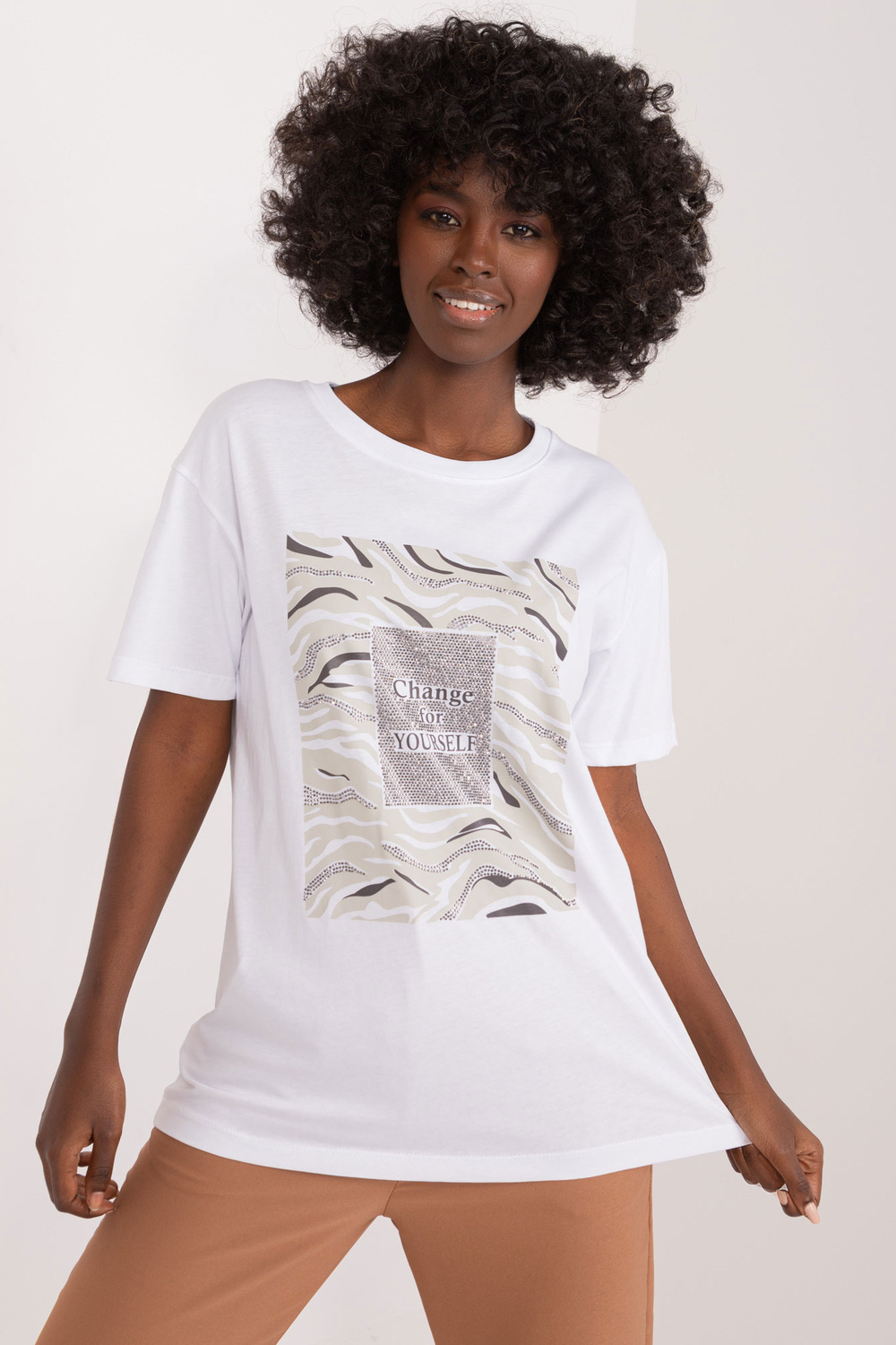 S dydžio marškinėlių matmenys, matuojami plokščiai: plotis pažastyje - 50 cm, bendras ilgis - 65 cm.