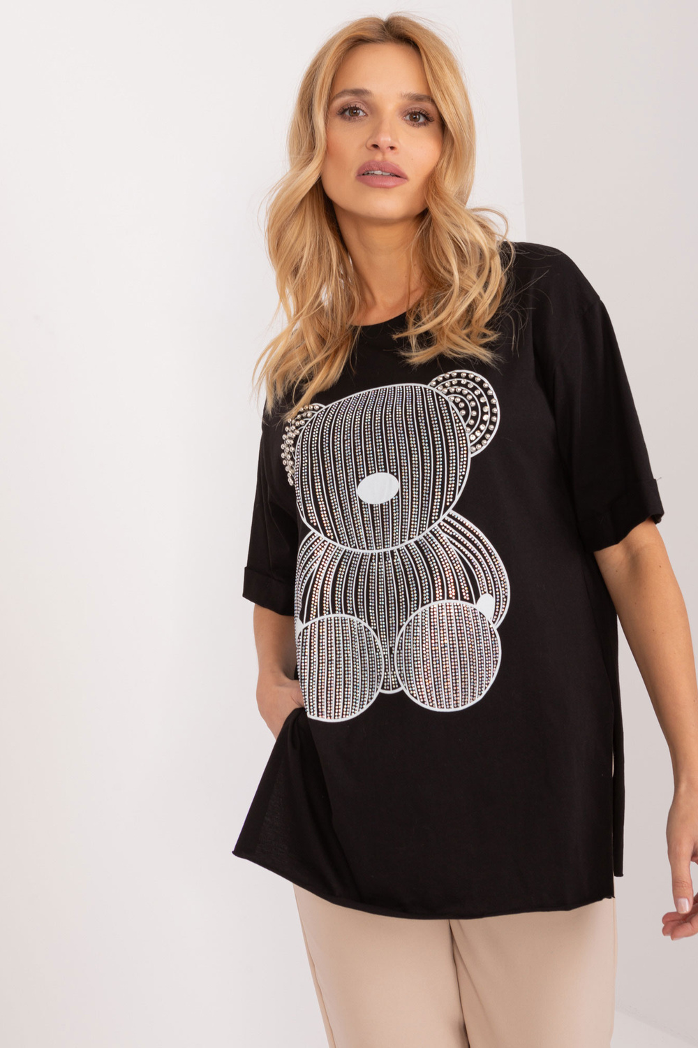S dydžio marškinėlių matmenys, matuojami plokščiai: plotis pažastyje - 53 cm, bendras ilgis - 72 cm.