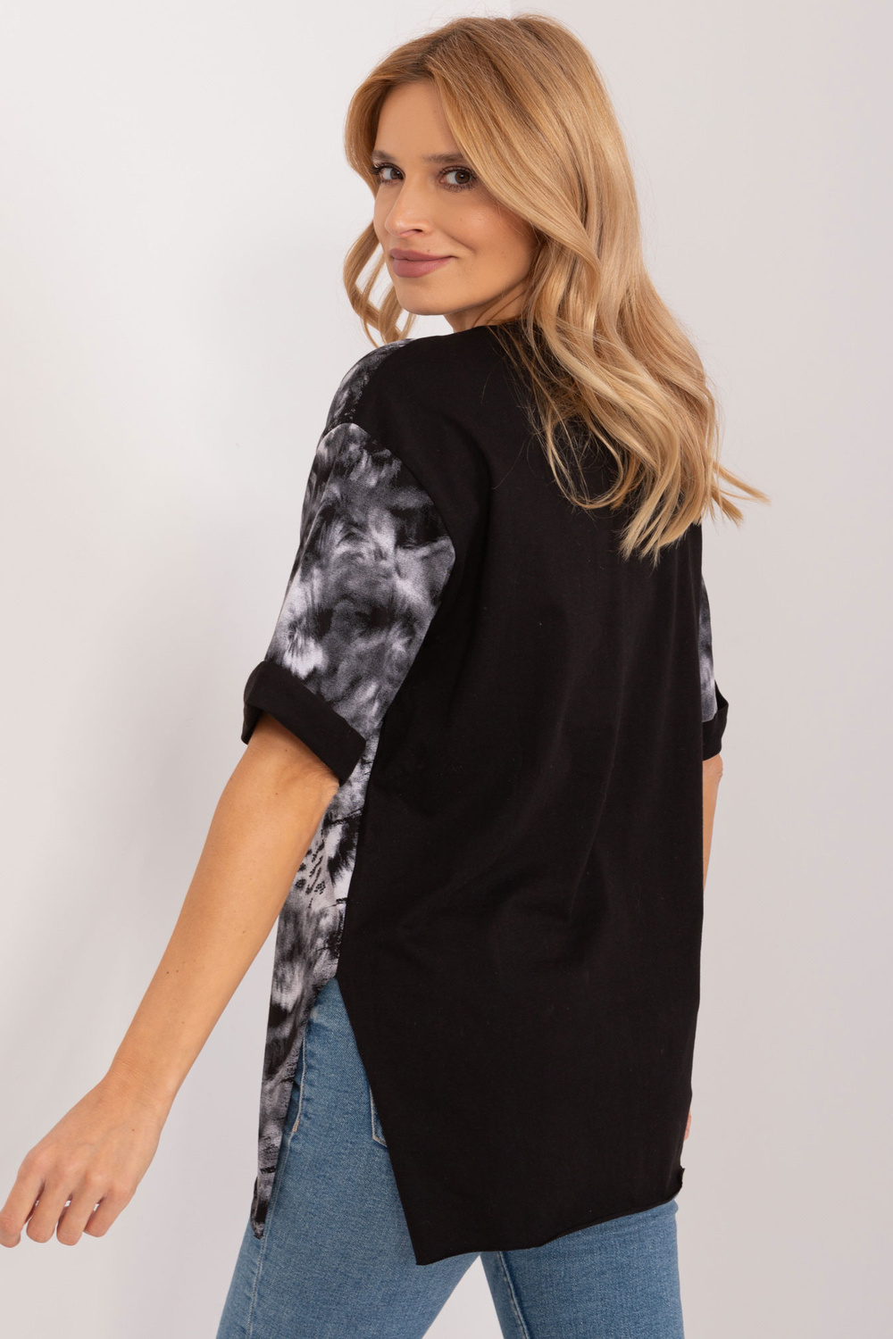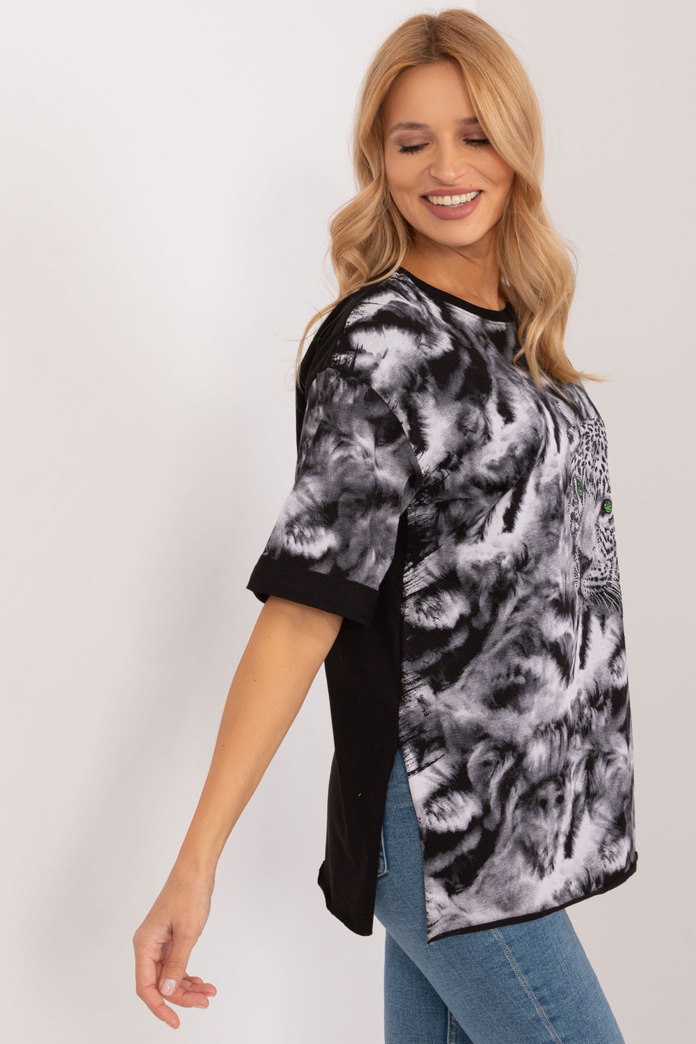 S dydžio marškinėlių matmenys, matuojami plokščiai: plotis pažastyje - 53 cm, bendras ilgis - 72 cm.