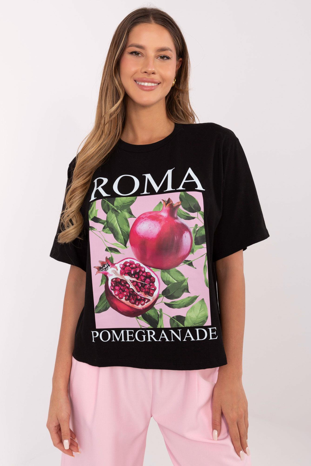 Marškinėlių išmatavimai vieno dydžio matuojant plokščius: plotis po pažastimis - 60 cm, rankovės ilgis - 28 cm (nuo siūlės), bendras plotis - 6 -5 cm8.