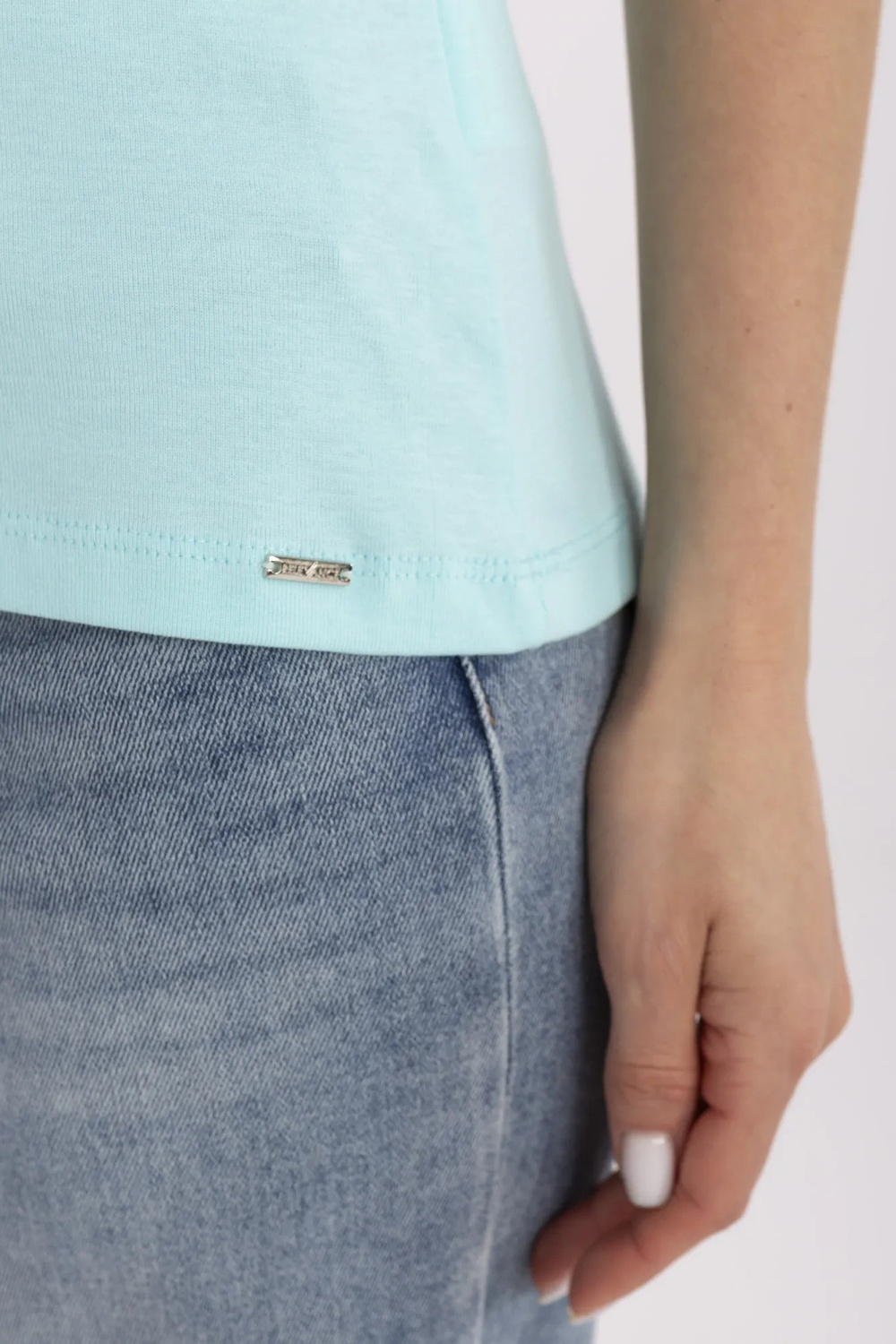 Marškinėlių išmatavimai S/M dydžiu matuojant plokščią: plotis po pažastimis - 45 cm, rankovės ilgis - 17 cm (nuo siūlės), klubų bendras plotis - 4 cm2.