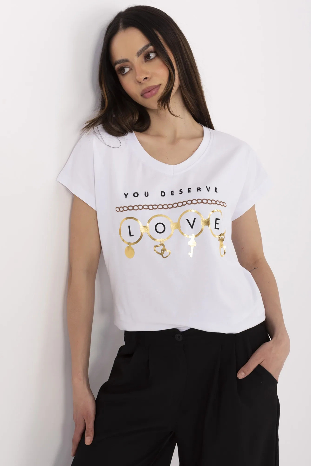 Marškinėlių išmatavimai S dydžiu išmatuoti plokščiai: plotis po pažastimis - 52 cm, rankovės ilgis - 22 cm, ilgis nuo iki 5 cm - 6 cm.