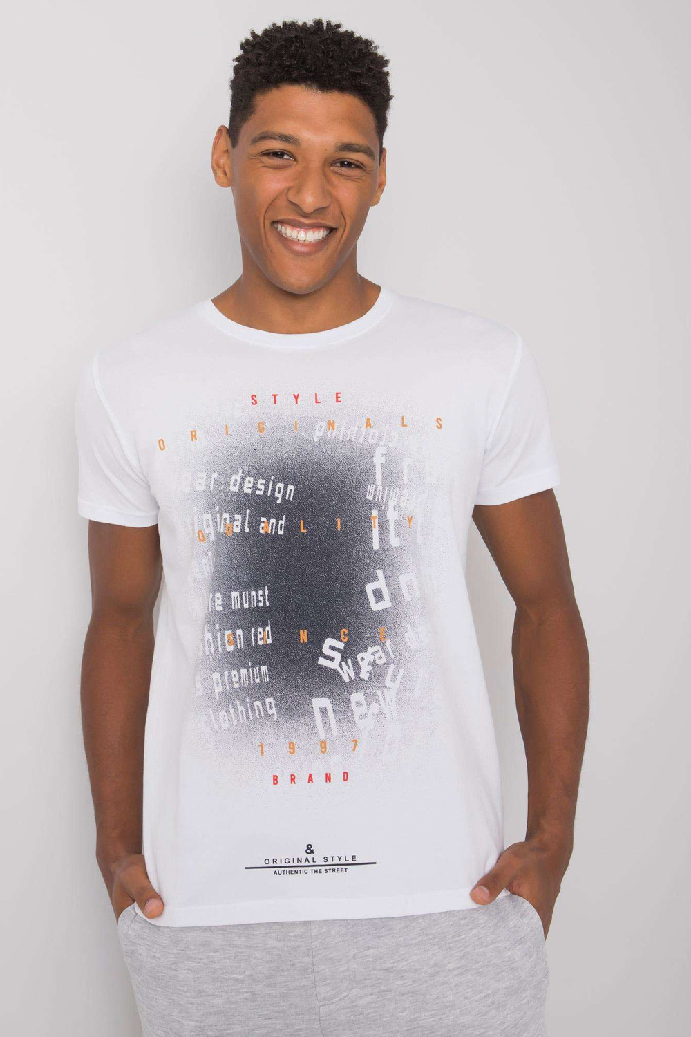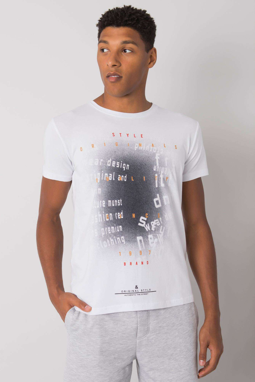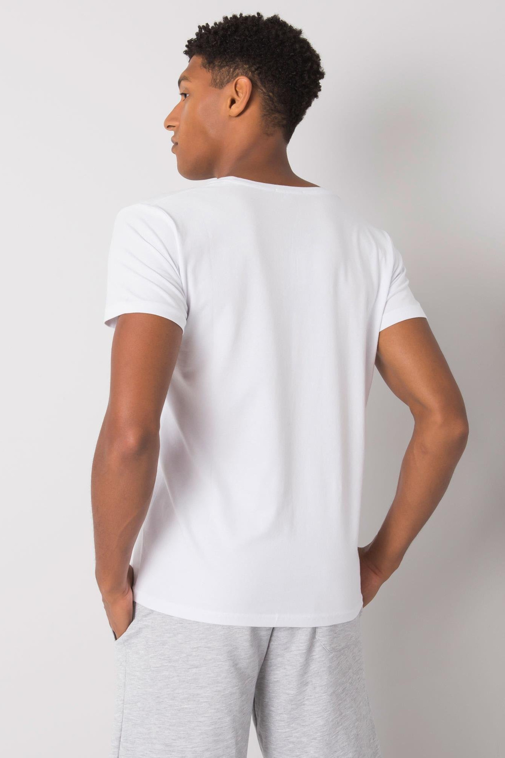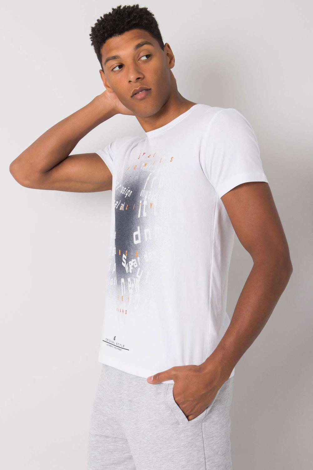 Balti medvilniniai vyriški marškinėliai su spauda.