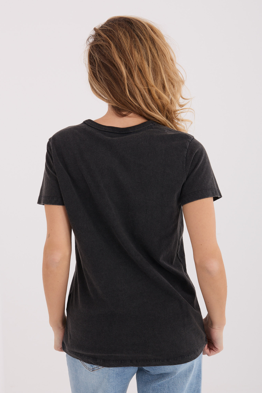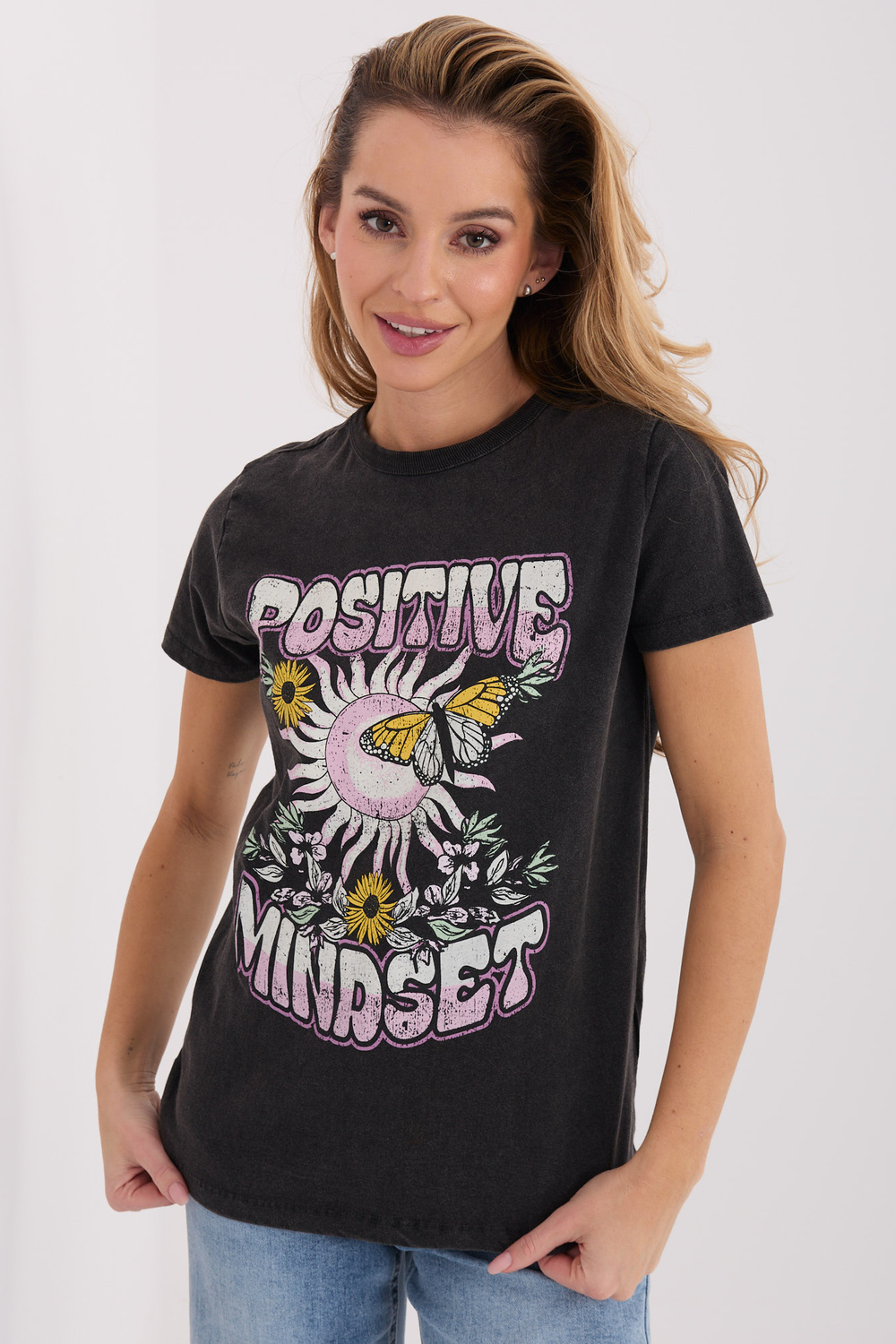 S dydžio marškinėlių matmenys matuojant gulsčiai: plotis po pažastimis – 47 cm, rankovės ilgis – 17 cm (nuo siūlės), plotis per klubus – 48 cm, bendras ilgis – 64 cm.