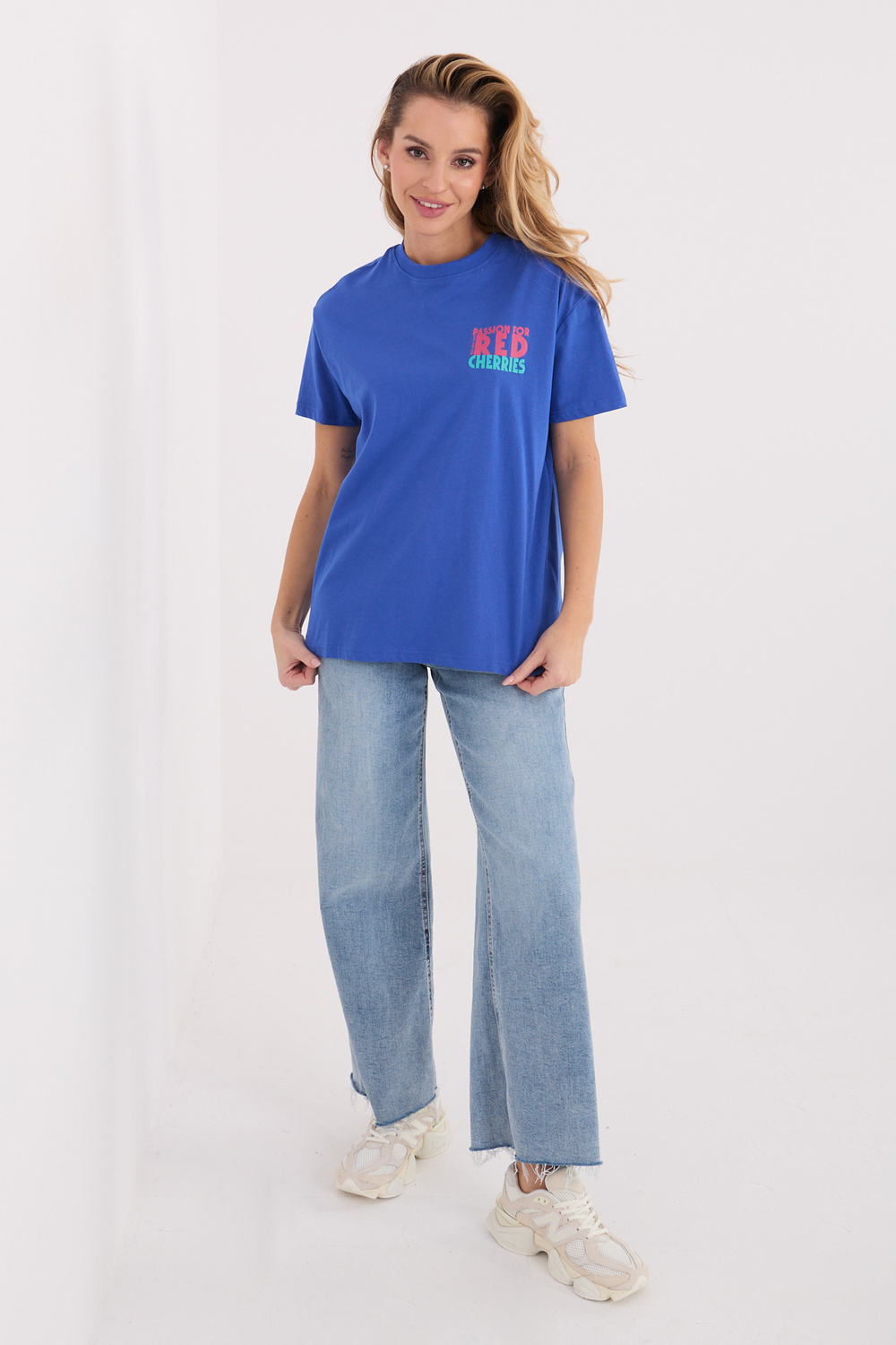 S dydžio marškinėlių išmatavimai išlyginti: plotis po pažastimis – 53 cm, rankovės ilgis – 17 cm (nuo siūlės), plotis klubuose – 54 cm, bendras ilgis – 67 cm.