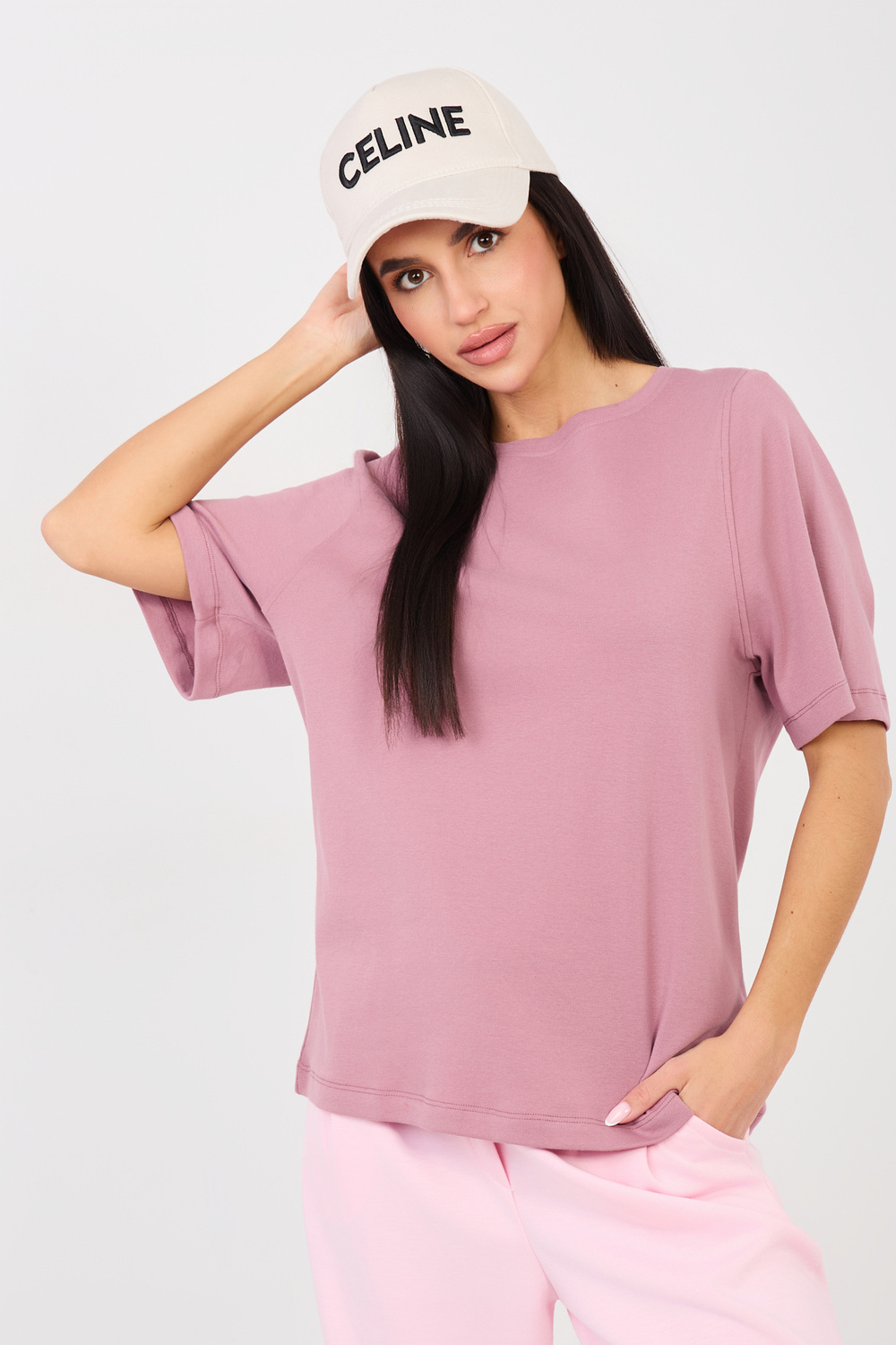 Marškinėliai trumpomis rankovėmis tamsiai rožiniai