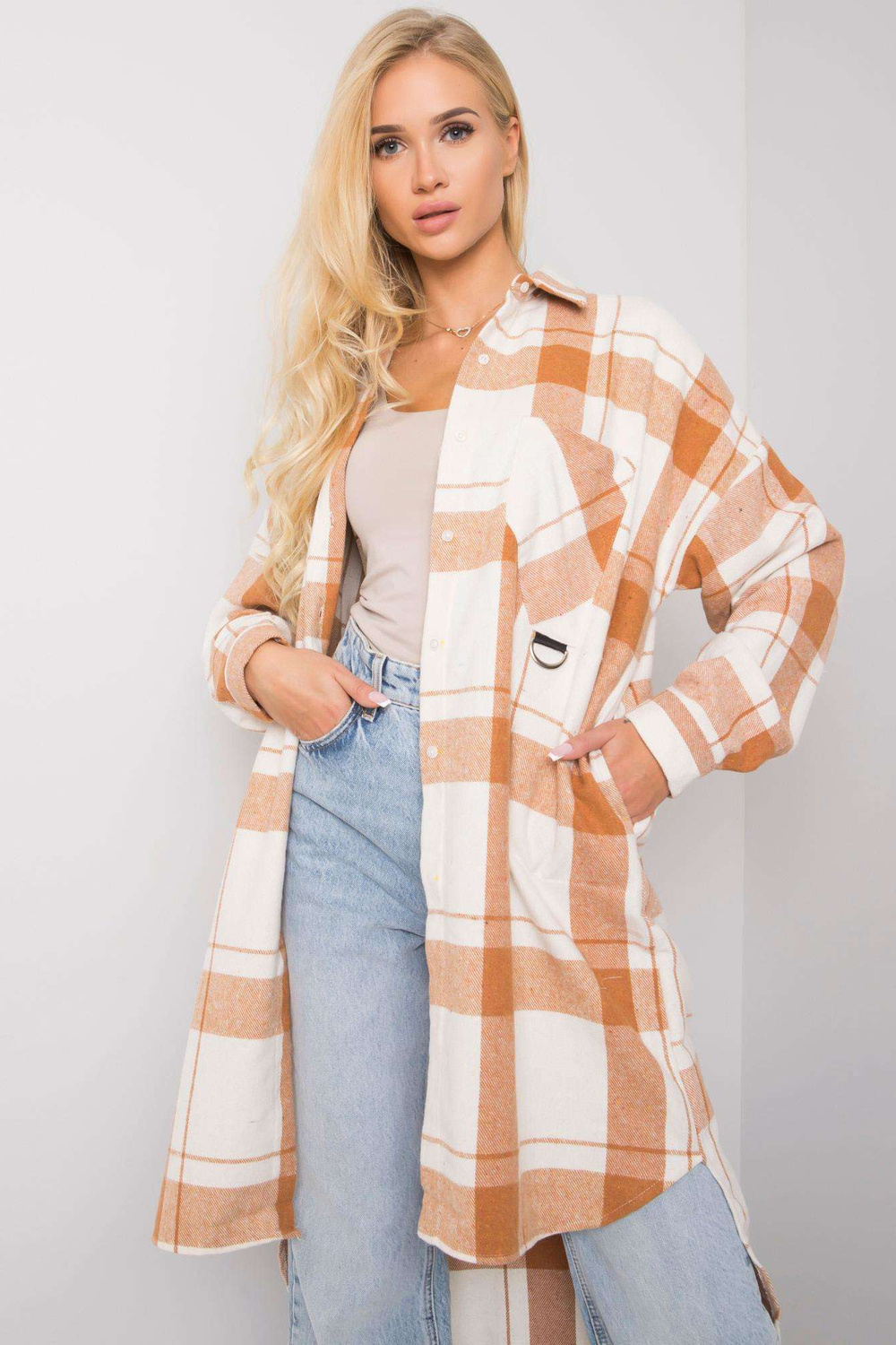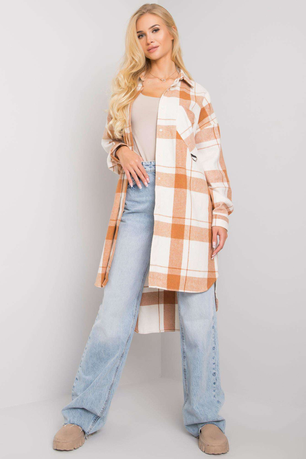 Modelis dėvi vieno dydžio dydį. Modelio matmenys: aukštis 175 cm, krūtinė 84 cm, juosmuo 62 cm, klubai 93 cm.