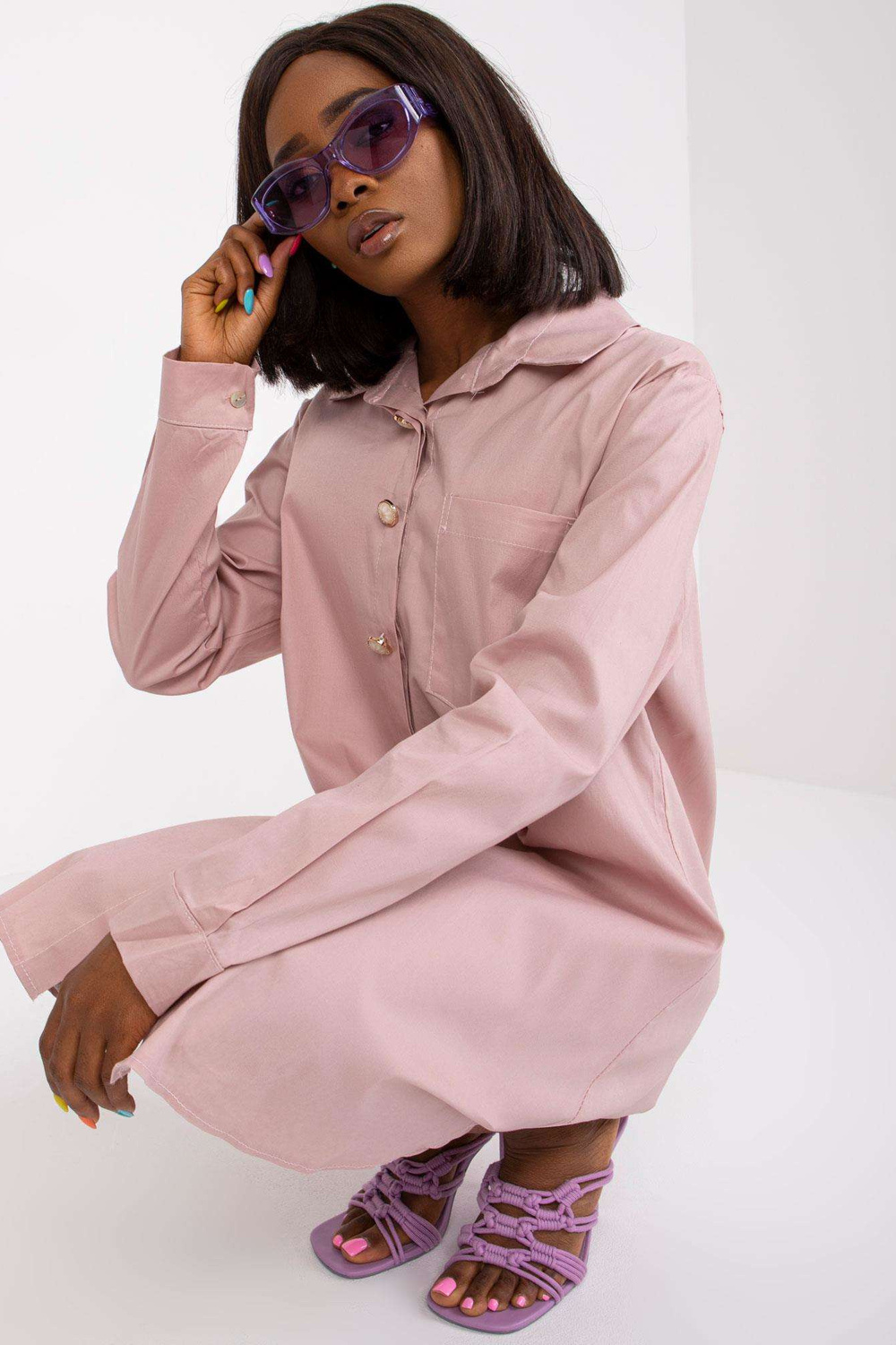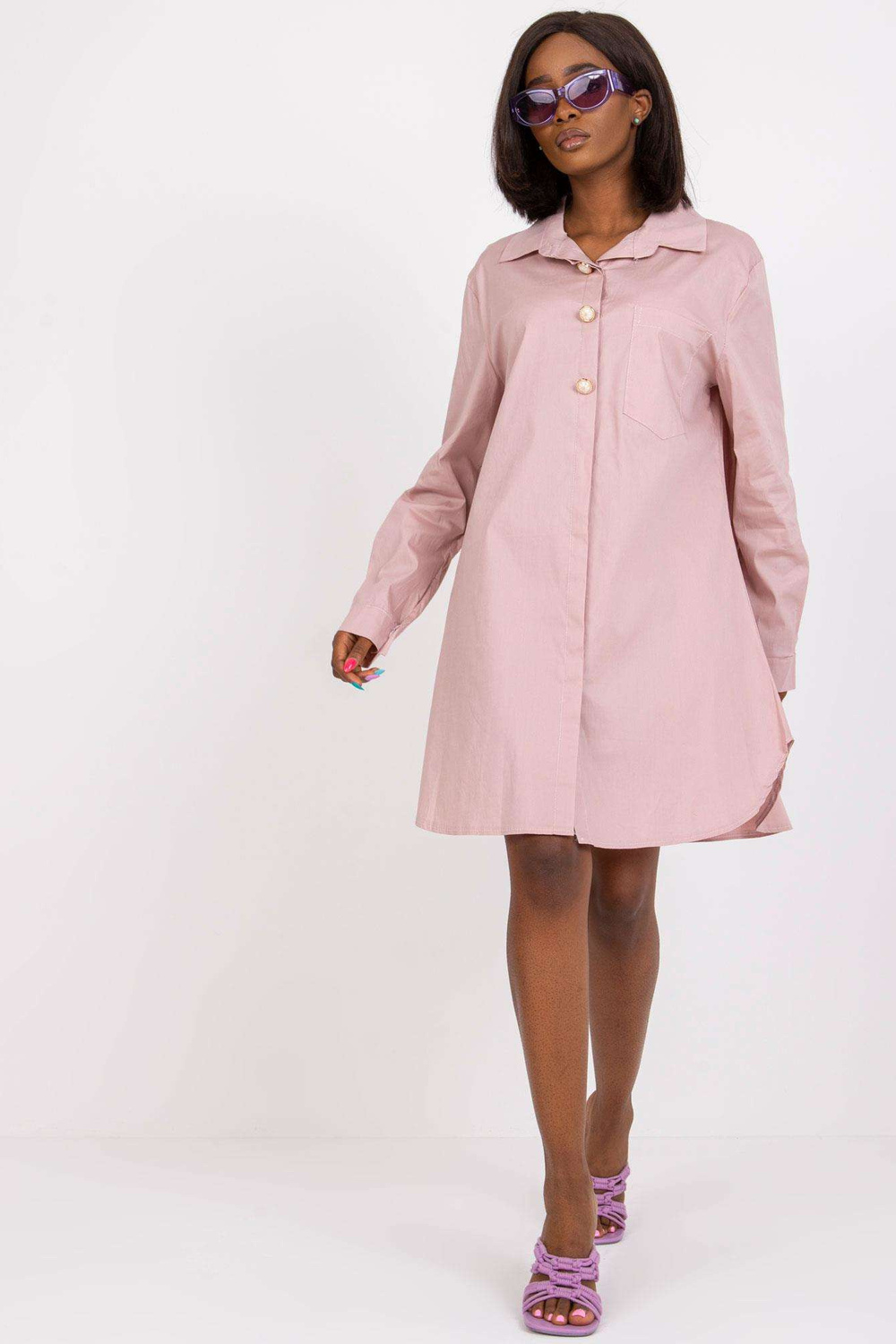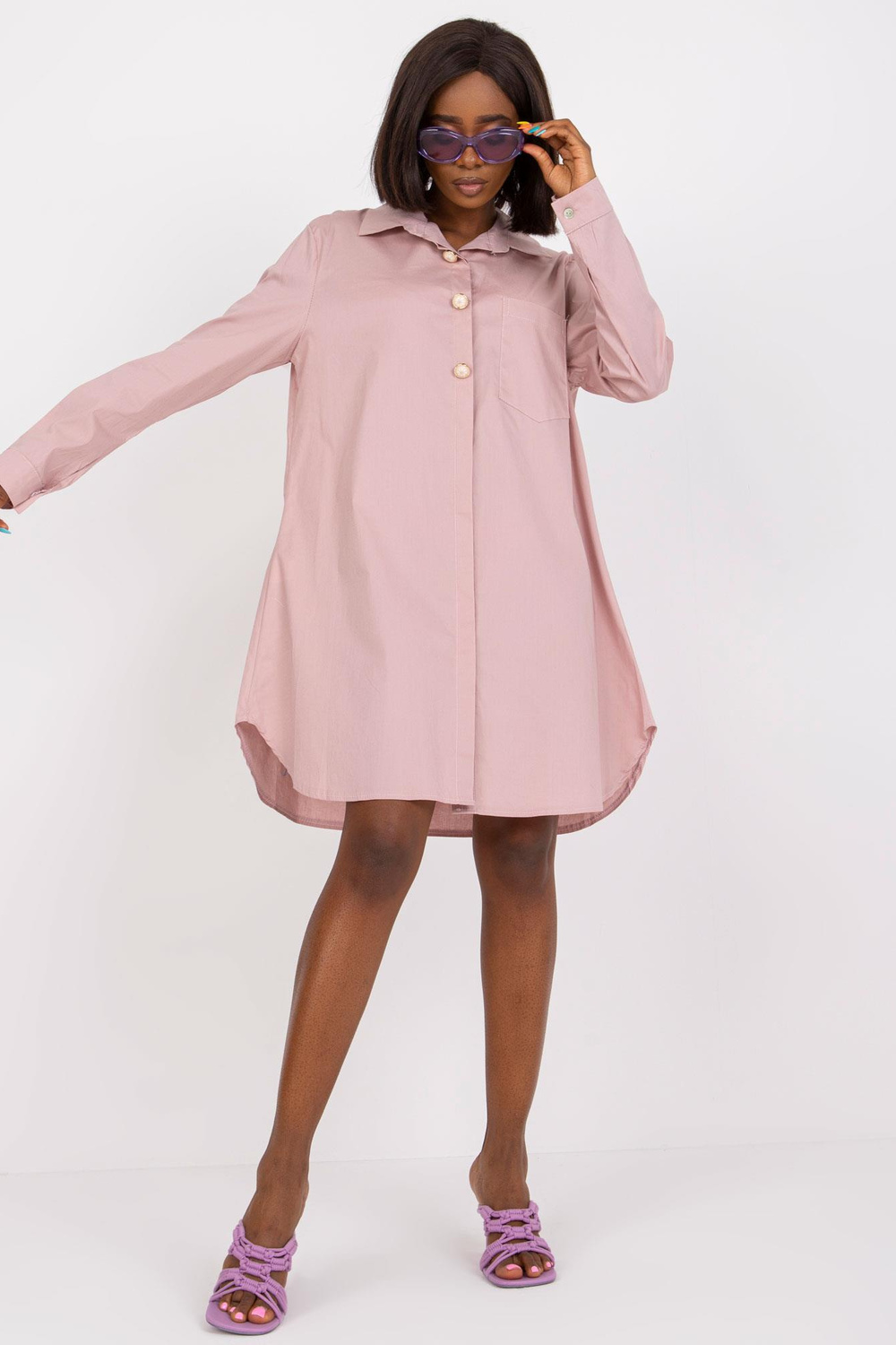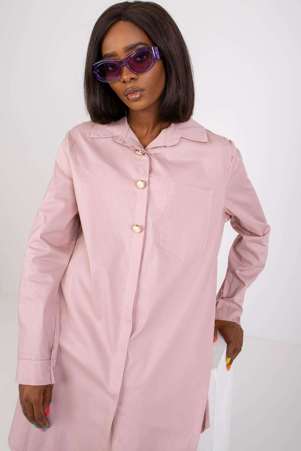 Purvini rožiniai moteriški marškiniai su dekoratyvinėmis sagomis Noelle .