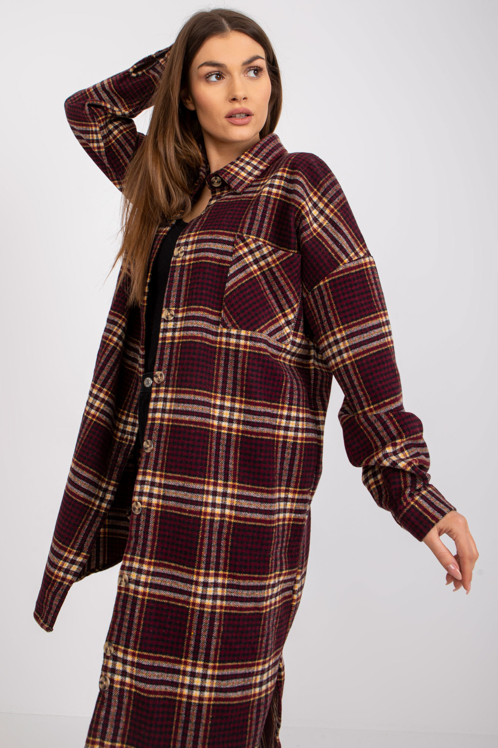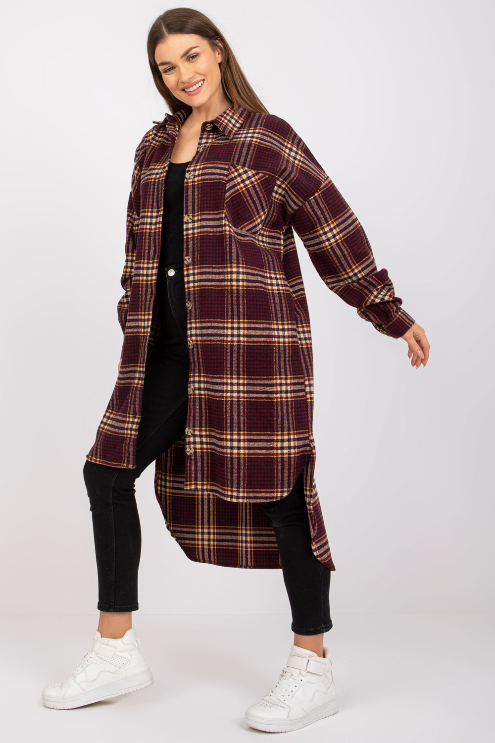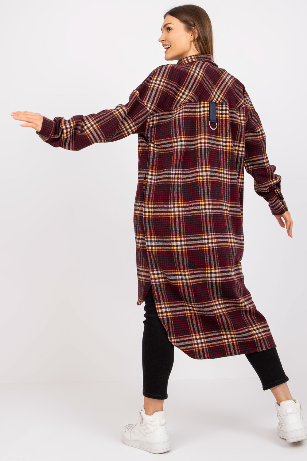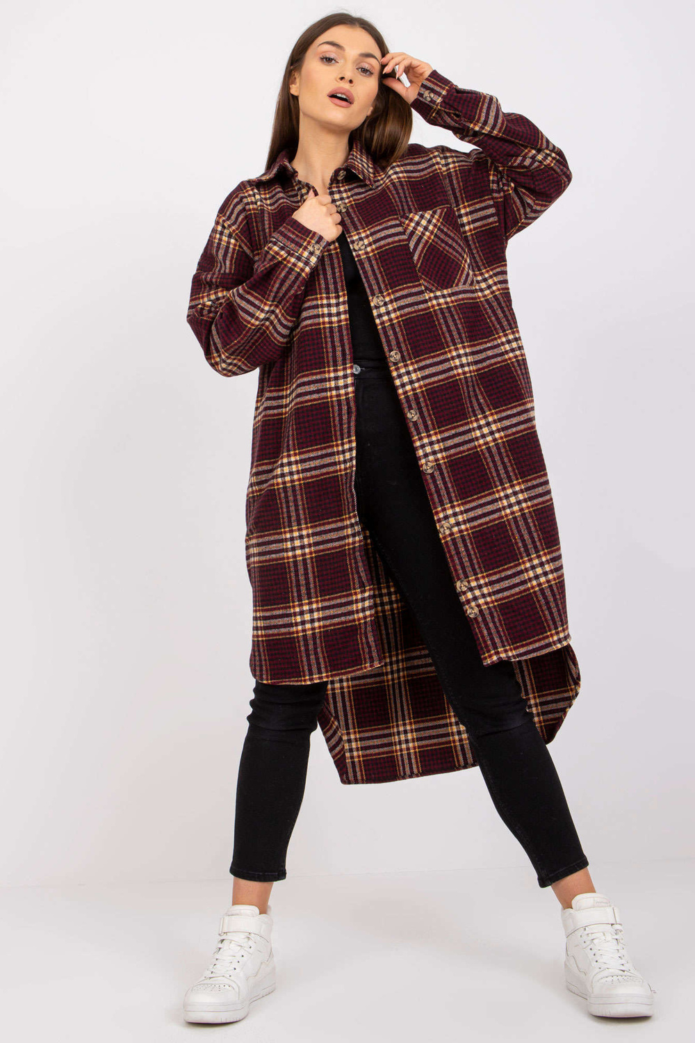 Burgundygellow ilgi languoti marškiniai ilgomis rankovėmis.