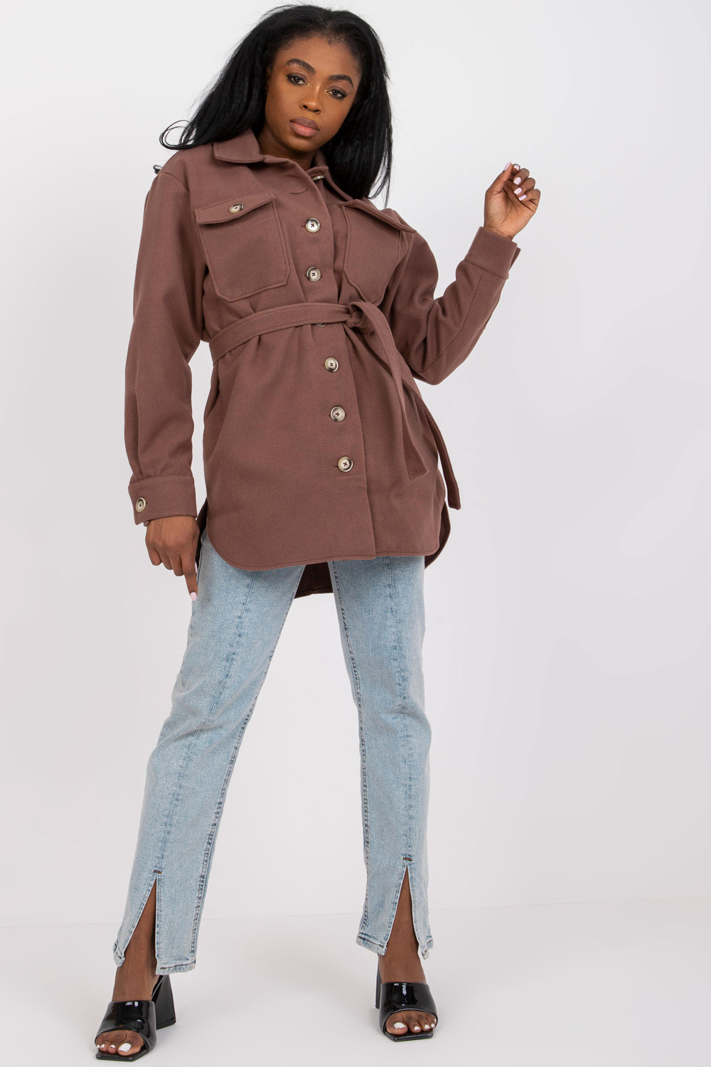 Modelis dėvi S/M dydį. Modelio matmenys: aukštis 169 cm, krūtinė 86 cm, juosmuo 67 cm, klubai 88 cm.