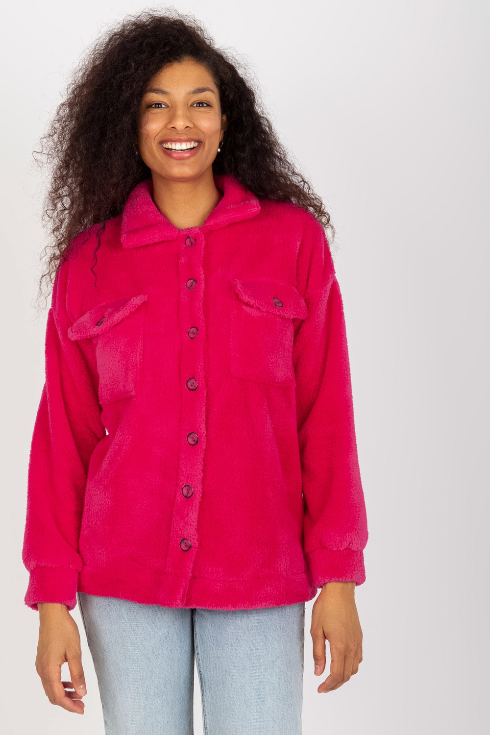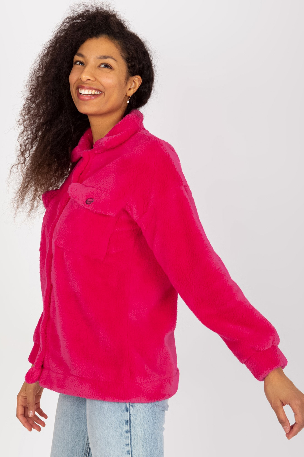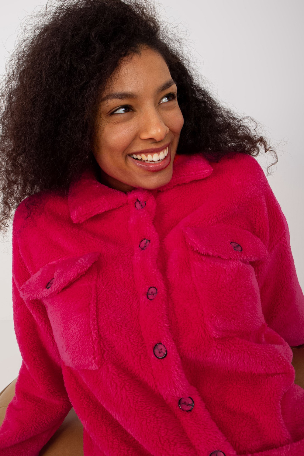 Fuksijos spalvos kailio viršutiniai marškinėliai su apykakle RUE PARIS.