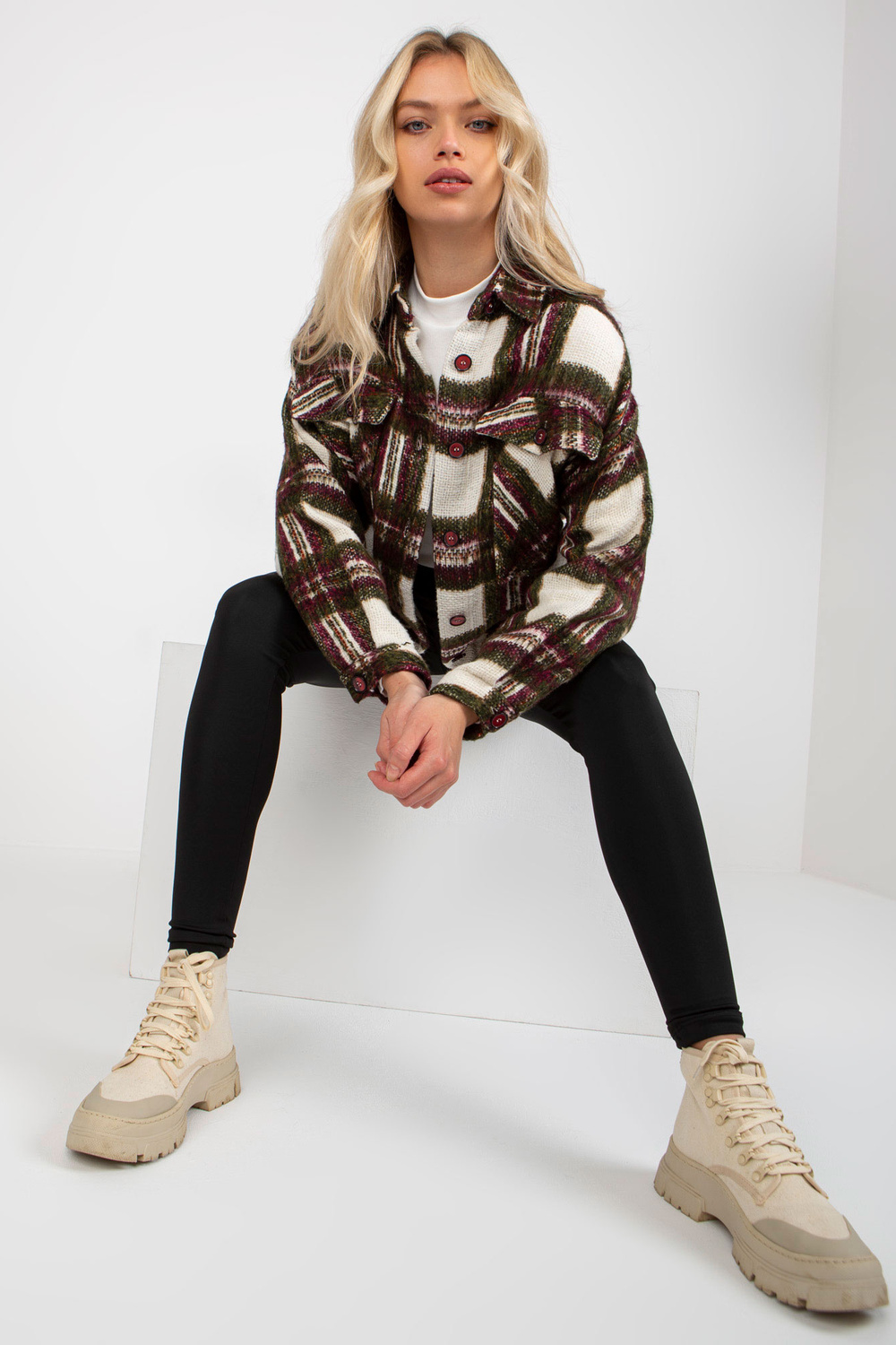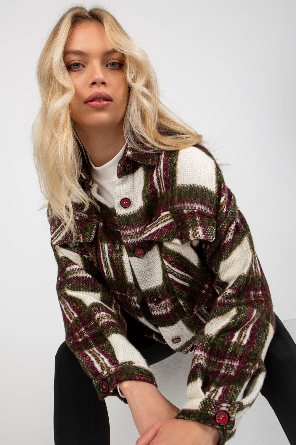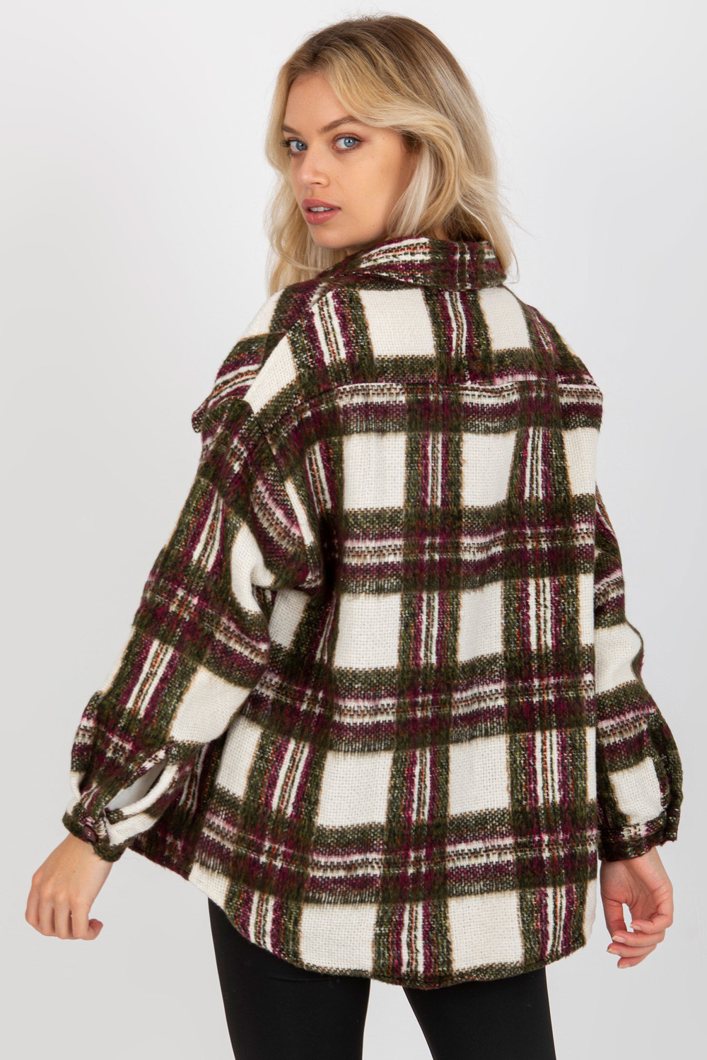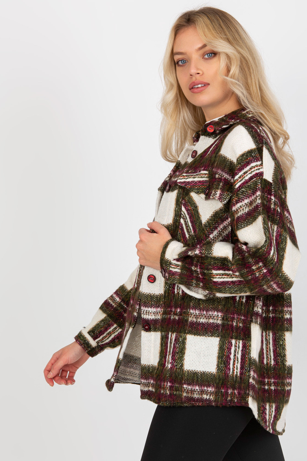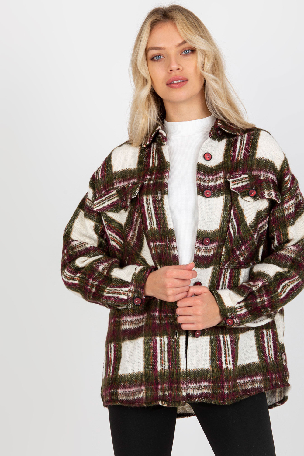 Burgundijos ir chaki spalvos šilti languoti marškiniai su sagomis strong> .