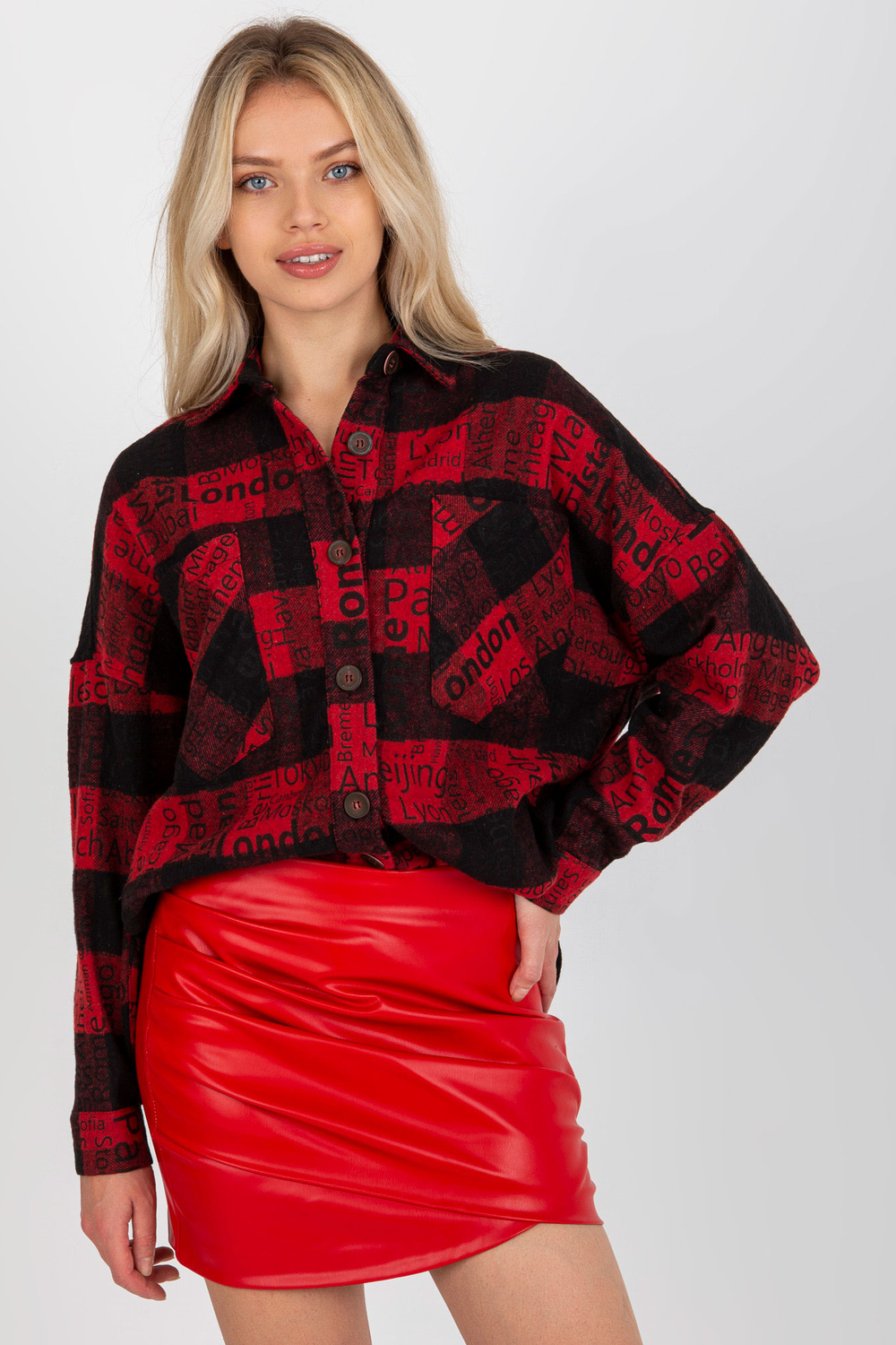 Juodos ir raudonos spalvos languoti marškinėliai su raštu strong> .