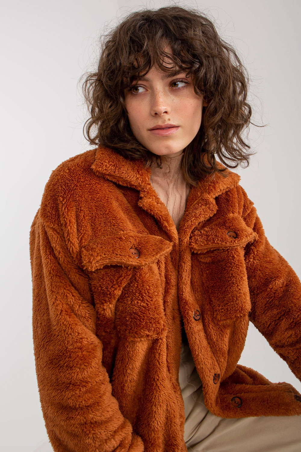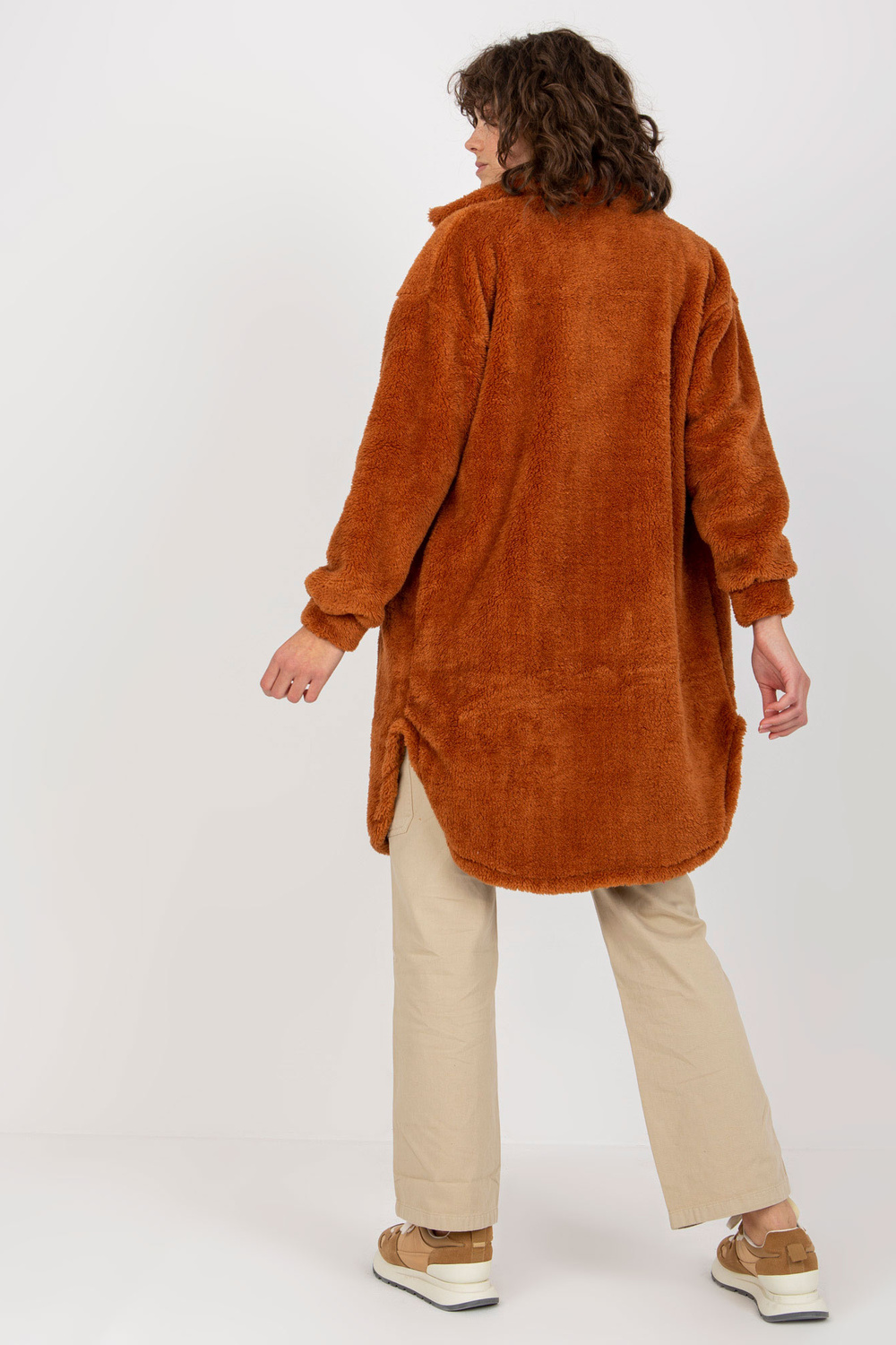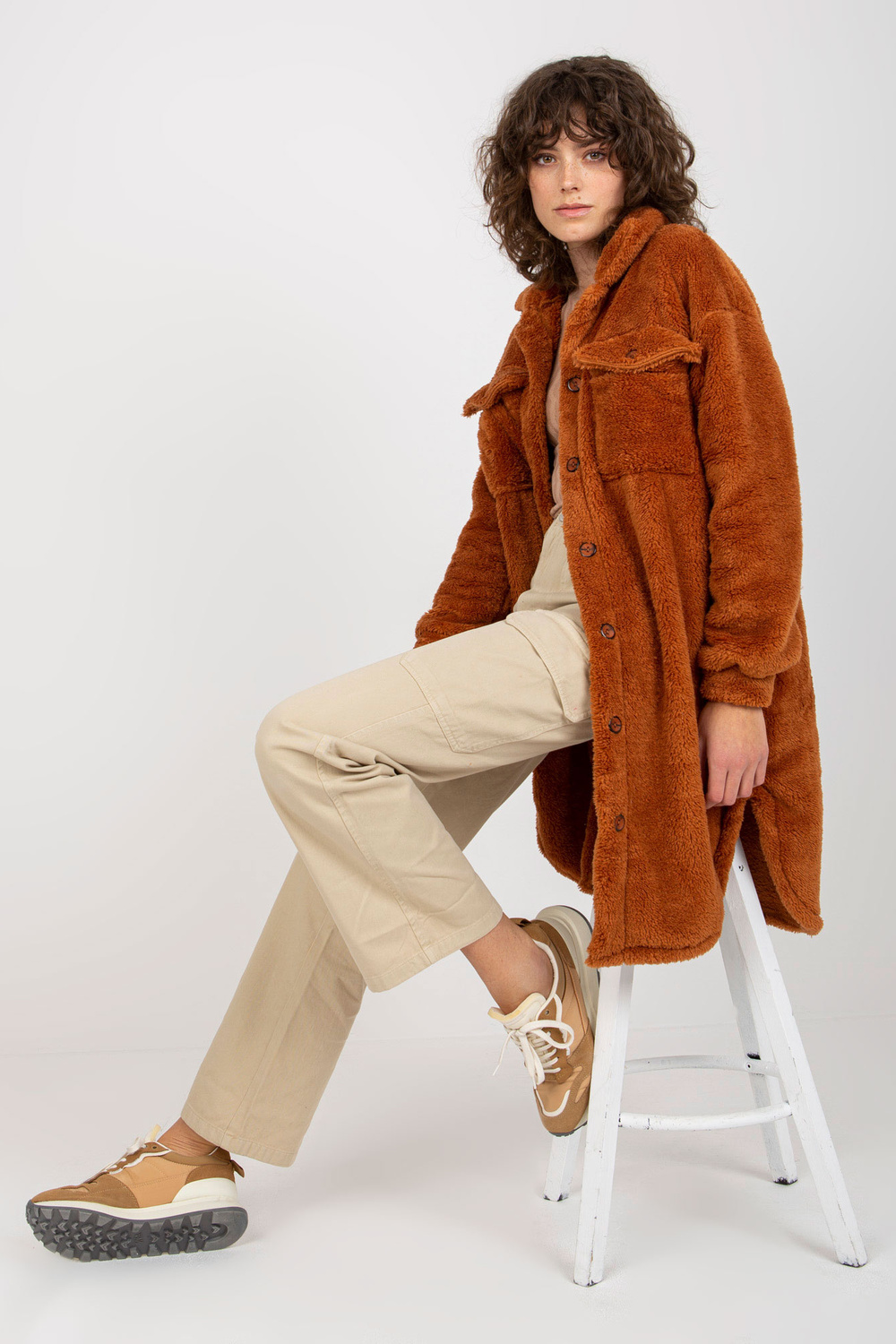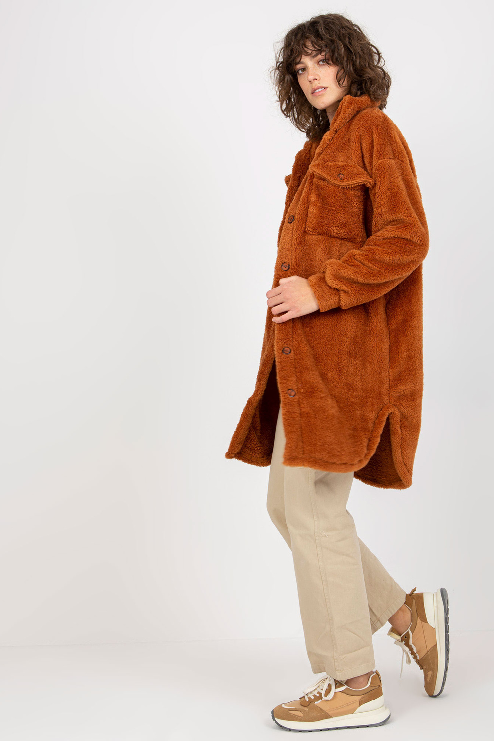 Šviesiai rudi ilgo kailio marškiniai su kišenėmis RUE PARIS.