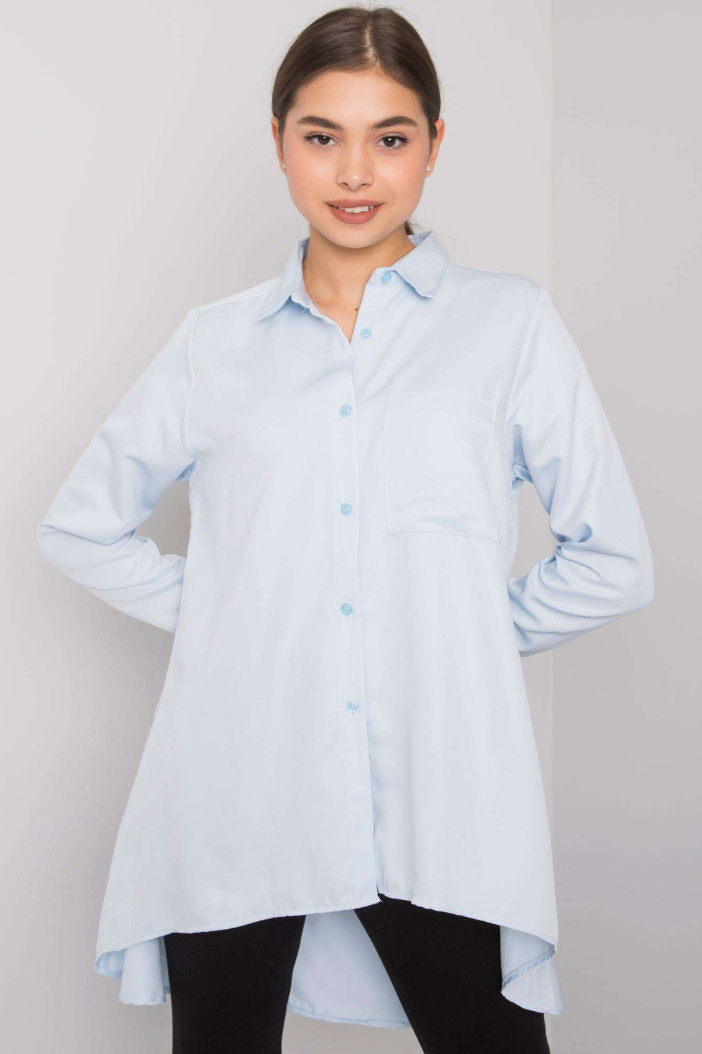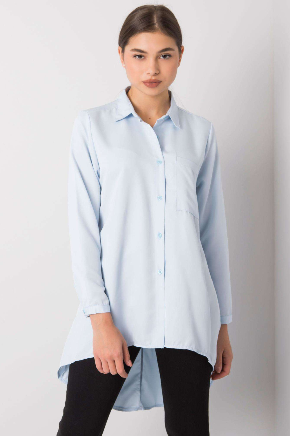 Šviesiai mėlyni asimetriniai Gillian marškiniai.