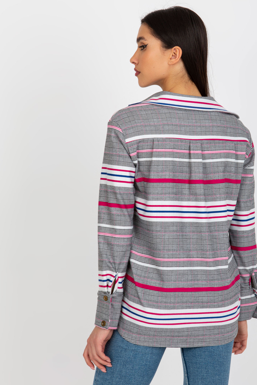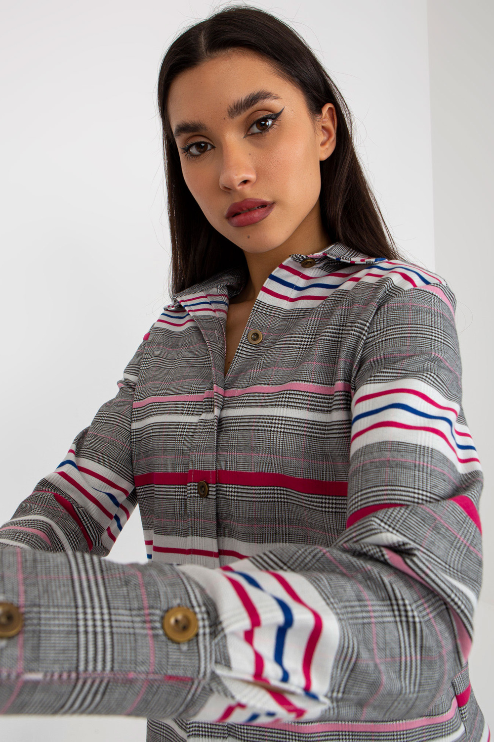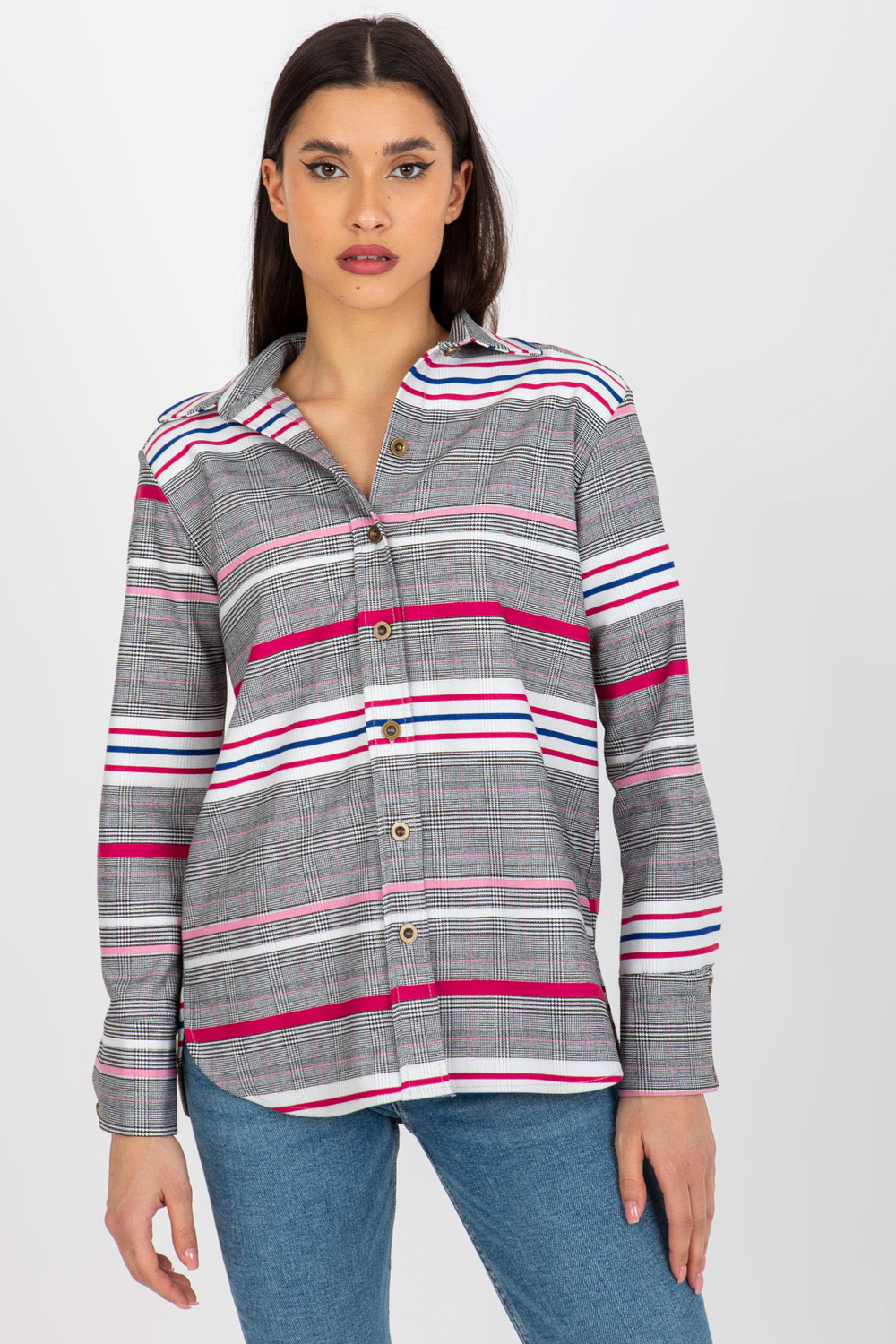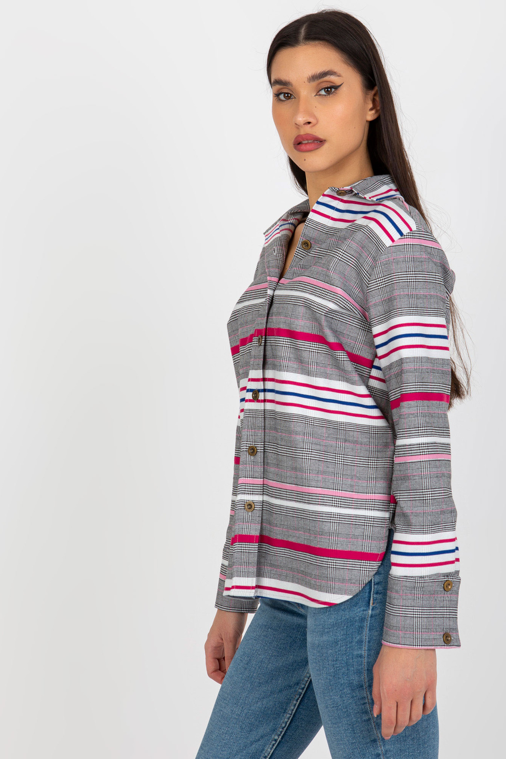 Balti ir rožiniai moteriški languoti marškiniai ir dryžiai.