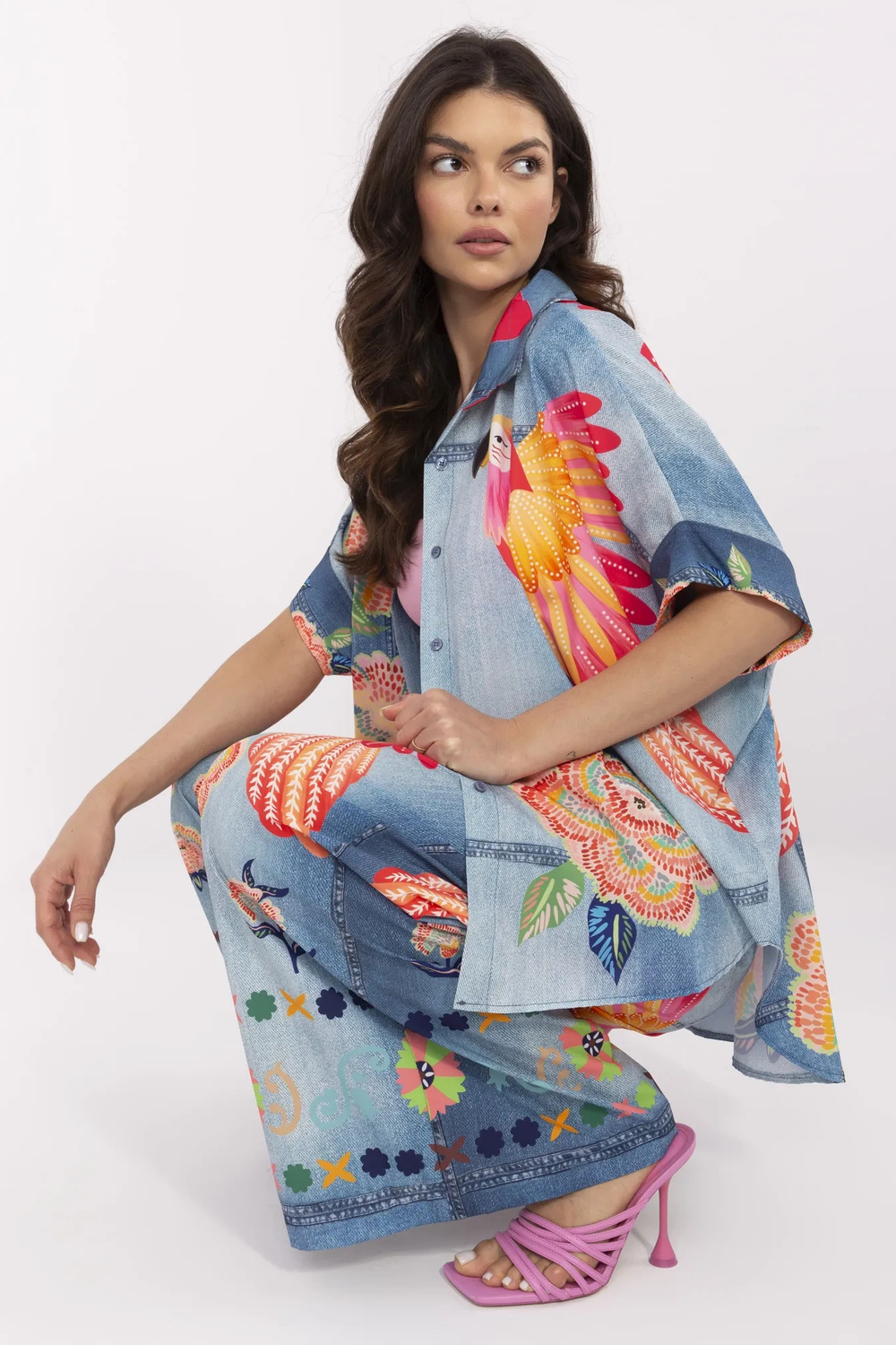 Vieno dydžio marškinių išmatavimai išmatuoti plokšti: plotis po pažastimis - 82 cm, bendras ilgis (priekyje) - 65 cm, rankovės ilgis - 34 cm, bendras ilgis (nuo nugaros 6 cm) ->