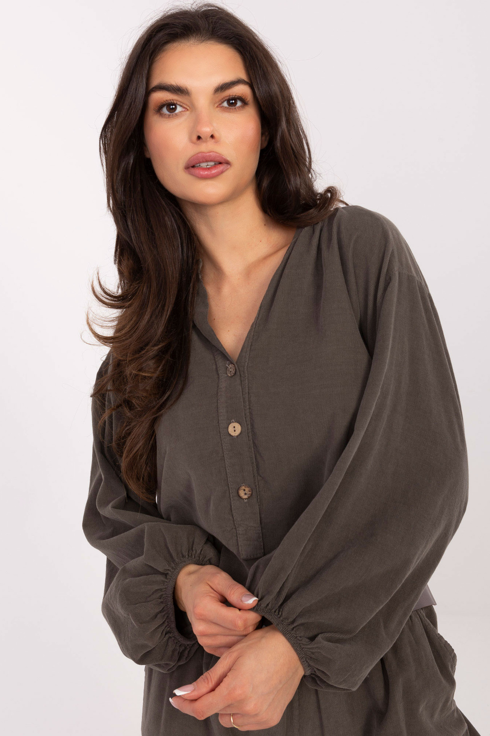 Vieno dydžio palaidinės matmenys išmatuoti gulint: plotis po pažastimis - 66 cm, bendras ilgis - 66 cm (priekyje), bendras ilgis - 77 cm (gale), plotis apačioje - 76 cm, rankovės ilgis - 51 cm (nuo siūlės).