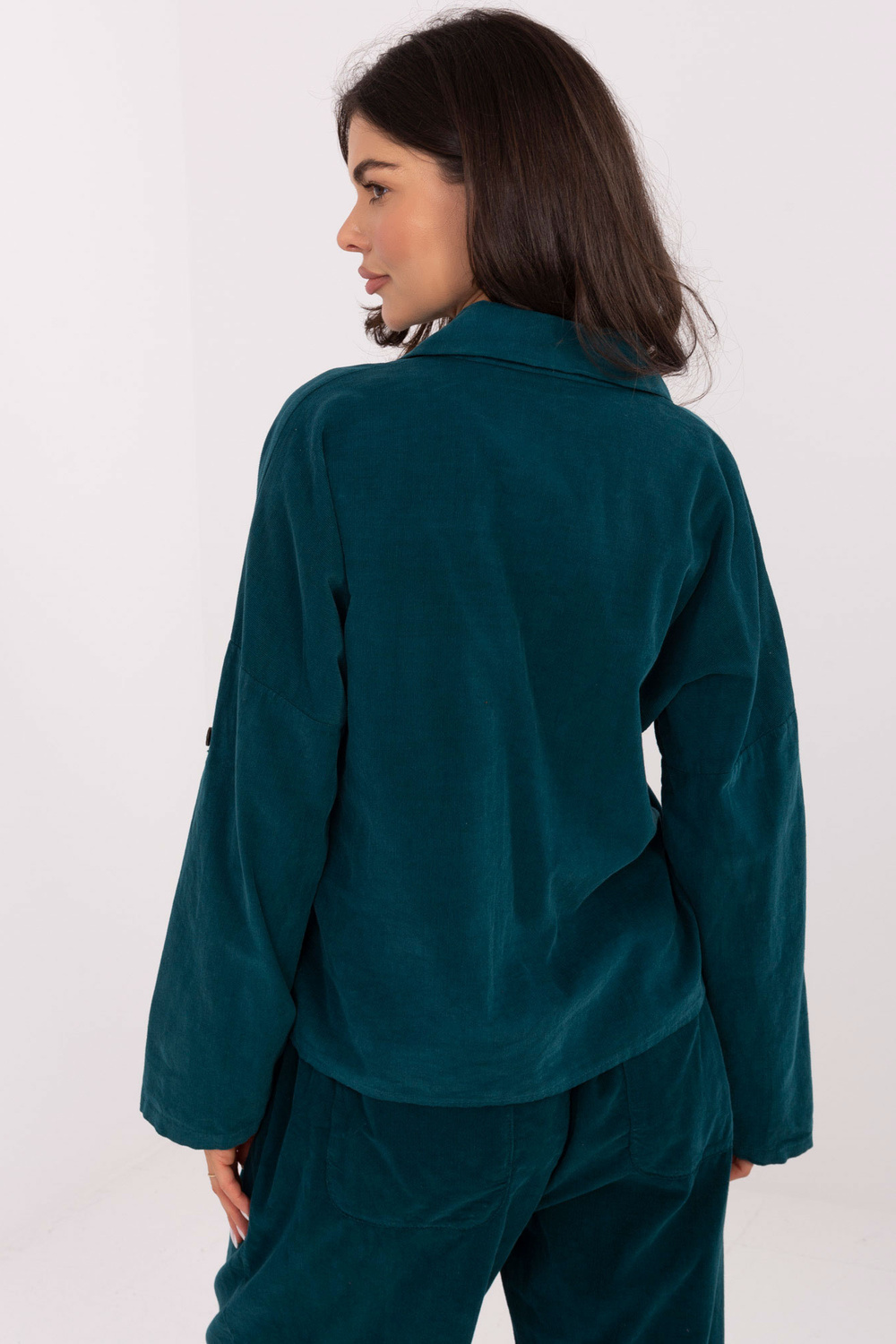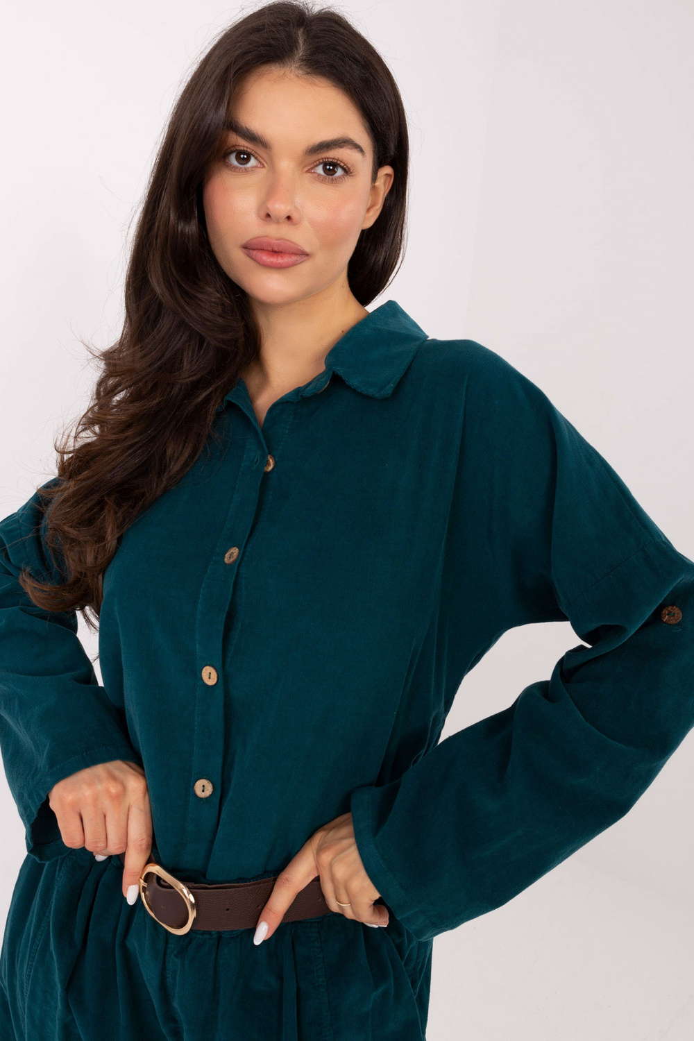 Modelis dėvi vieno dydžio drabužį. Modelio matmenys: ūgis 173 cm, krūtinė 85 cm, liemuo 62 cm, klubai 95 cm.