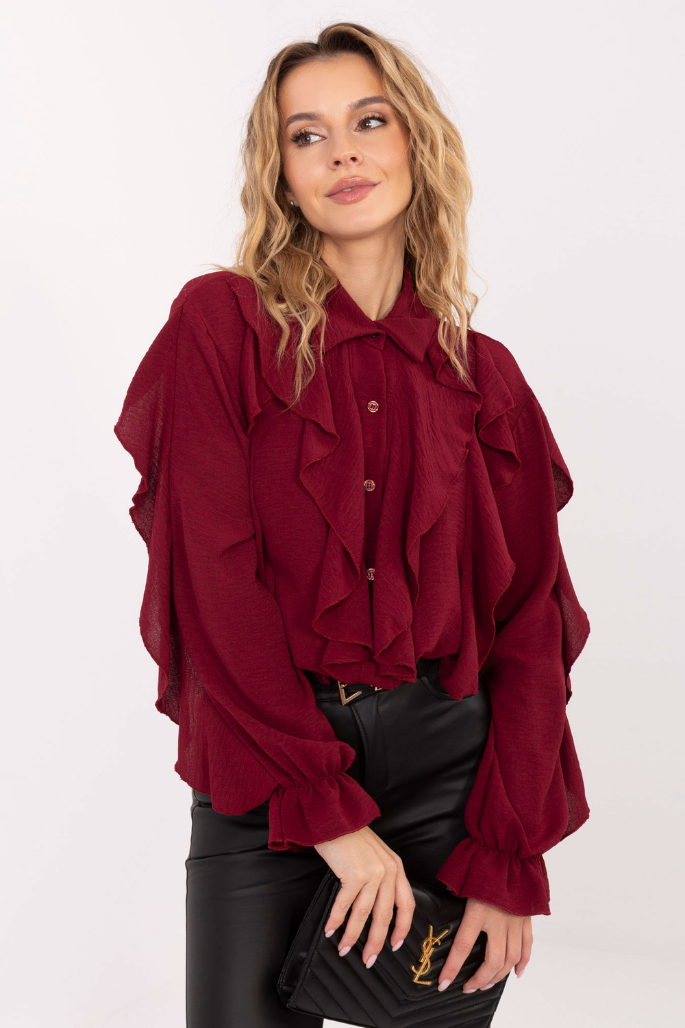 Modelis dėvi vieno dydžio drabužį. Modelio matmenys: ūgis 169 cm, krūtinė 88 cm, liemuo 68 cm, klubai 89 cm.