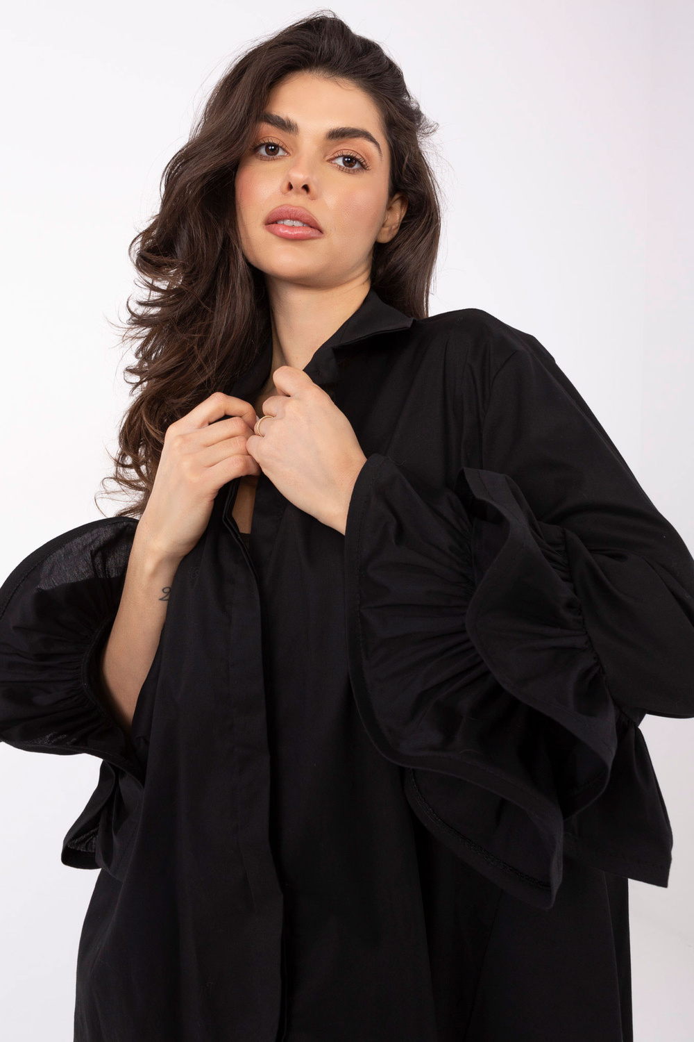Modelis dėvi vieno dydžio drabužį. Modelio išmatavimai: ūgis 173 cm, krūtinė 85 cm, liemuo 62 cm, klubai 95 cm.