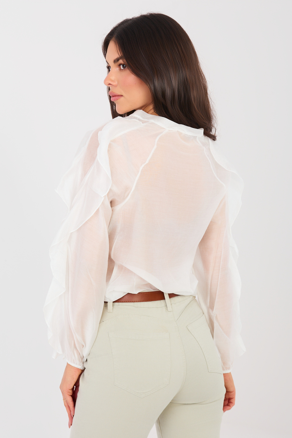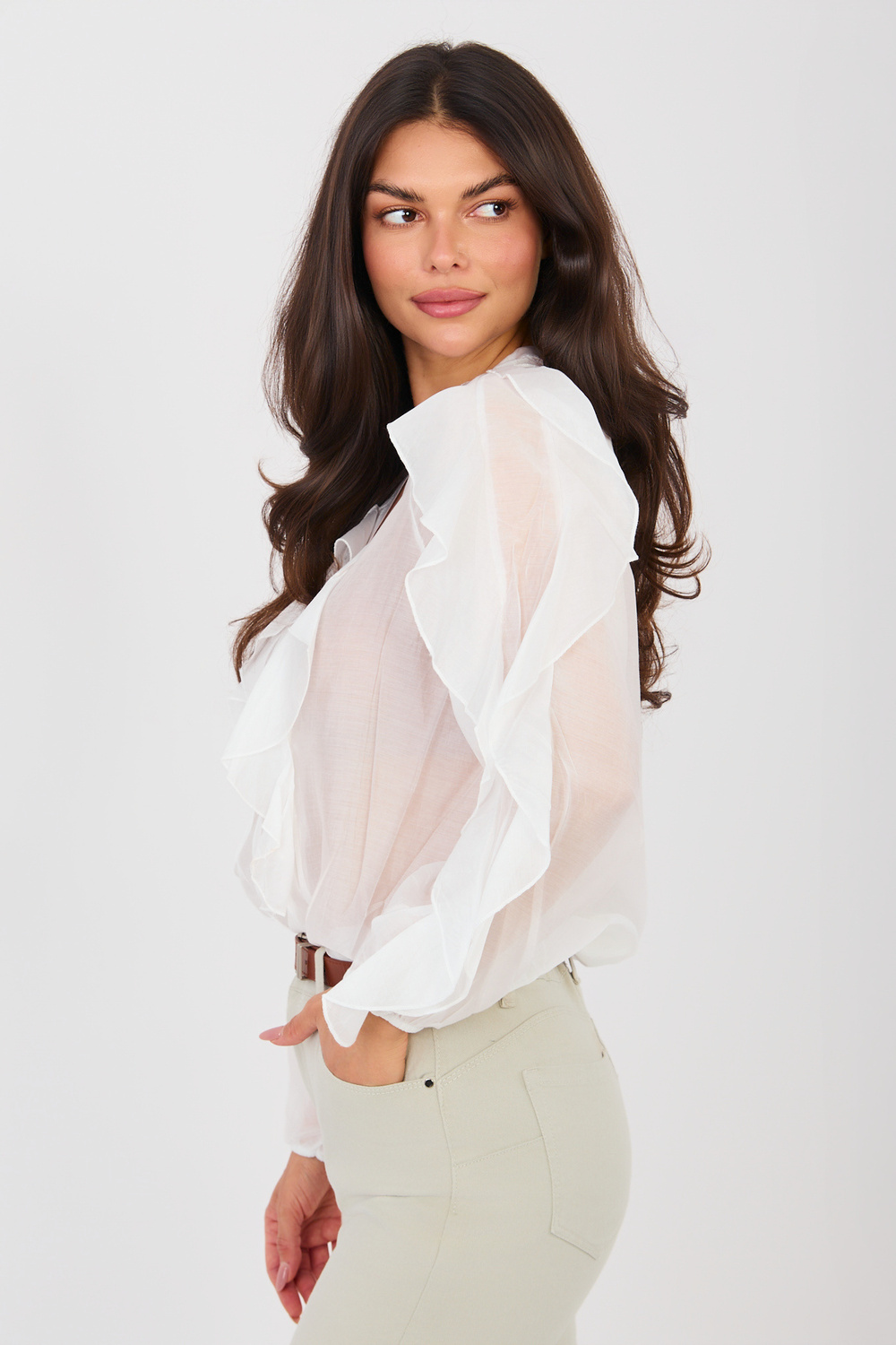 Modelis dėvi vieno dydžio drabužį. Modelio matmenys: ūgis 173 cm, krūtinė 85 cm, juosmuo 62 cm, klubai 95 cm.