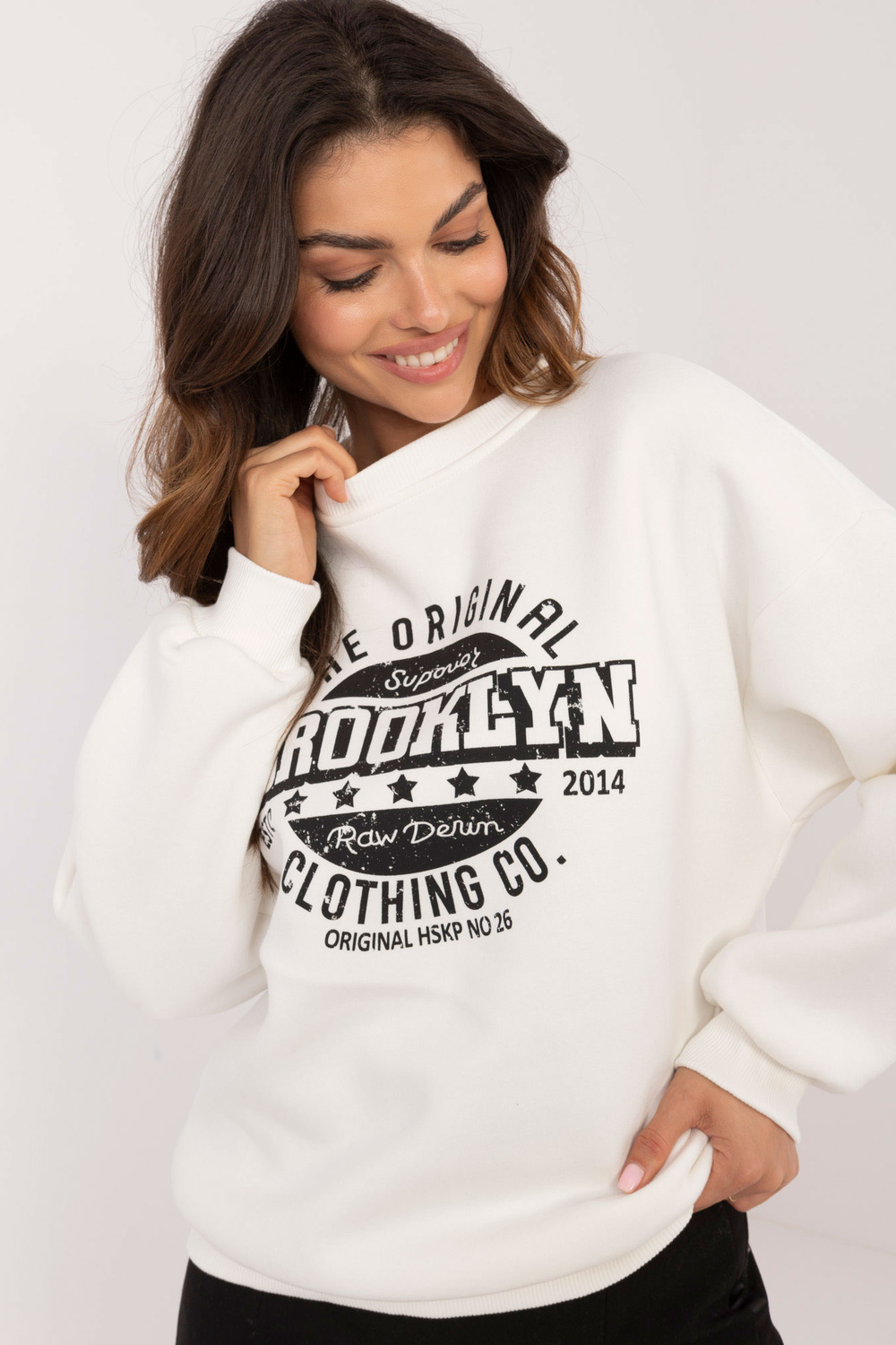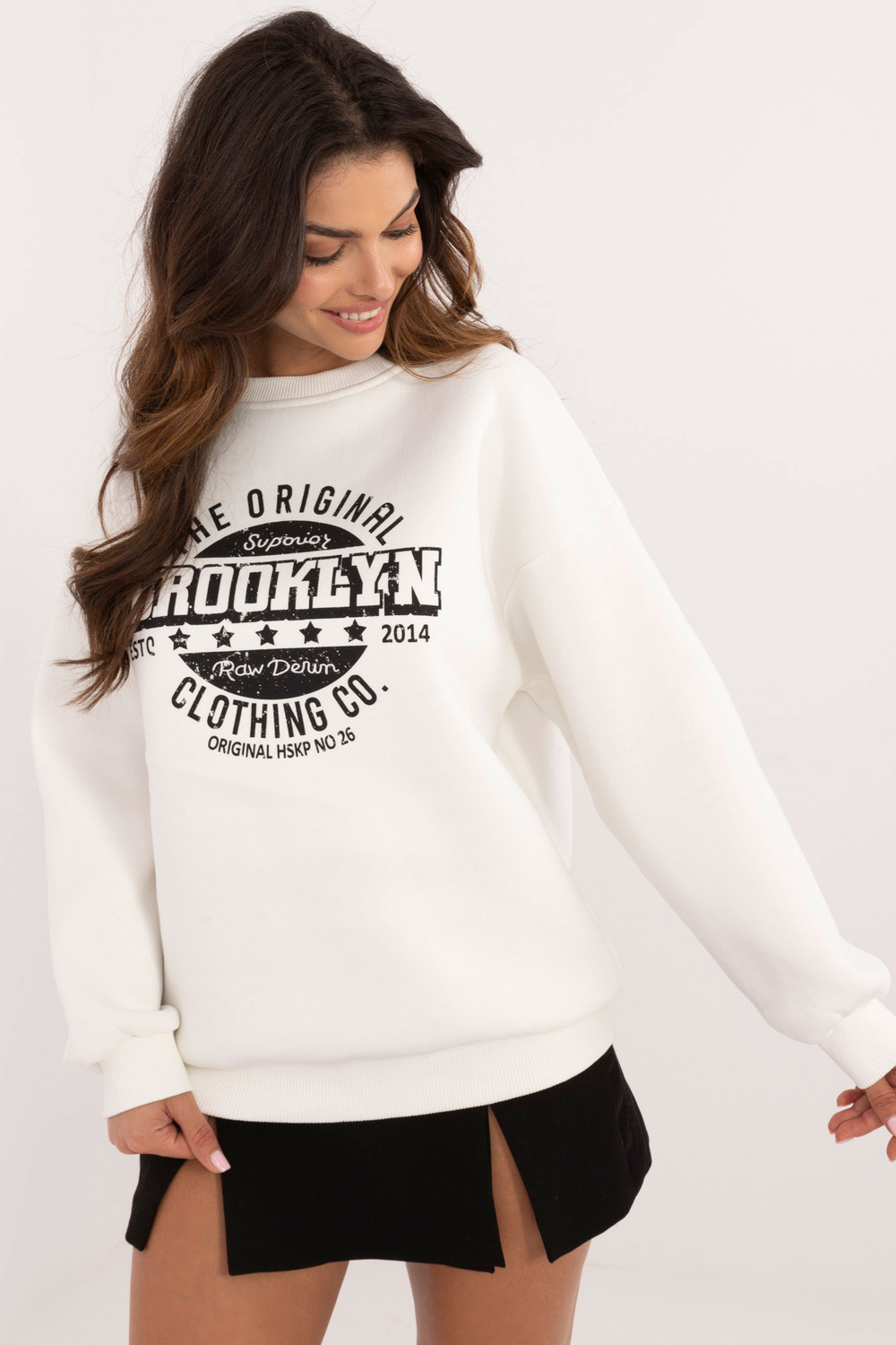 Modelis dėvi vieno dydžio dydį. Modelio išmatavimai: ūgis 173 cm, krūtinė 85 cm, juosmuo 62 cm, klubai 95 cm.