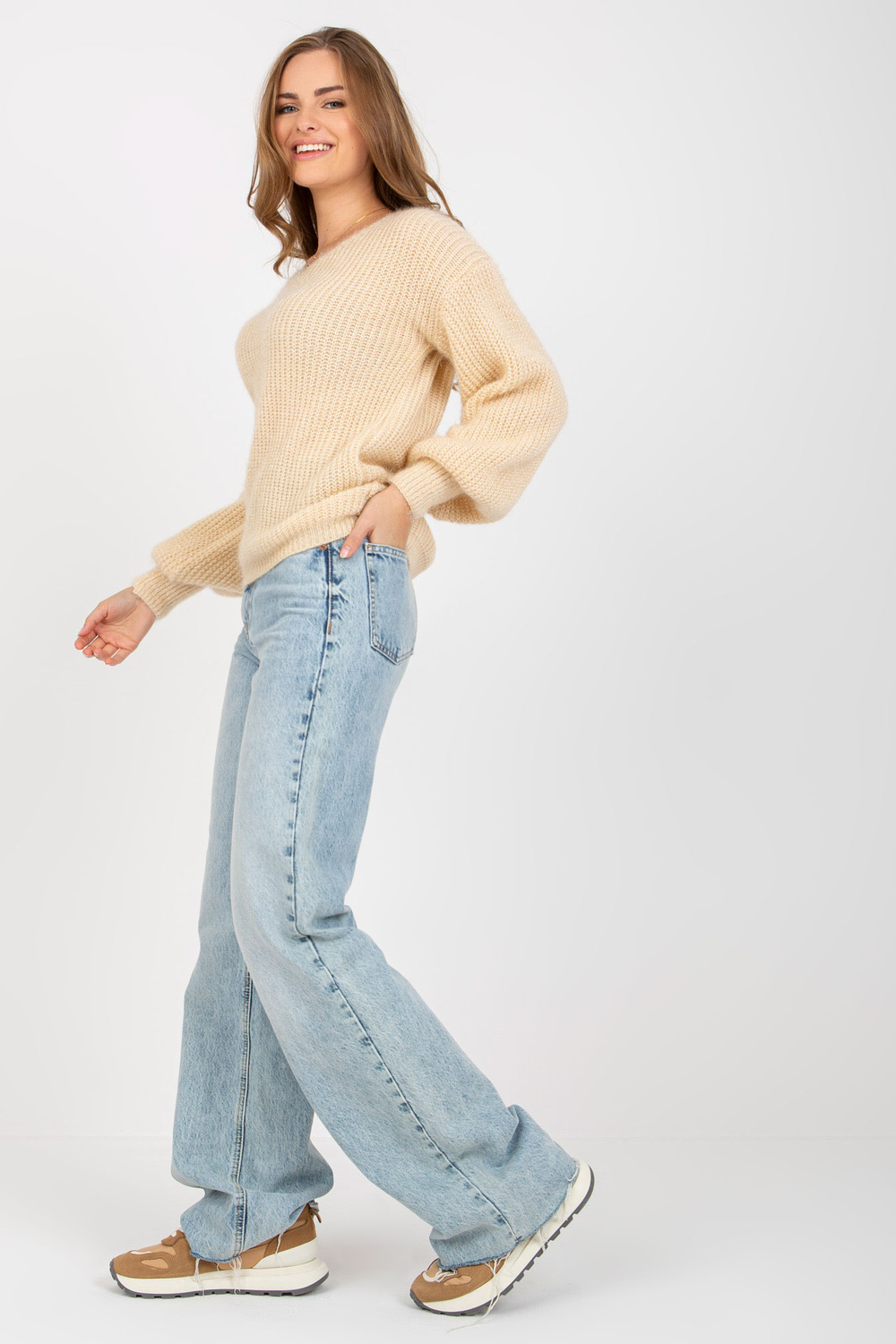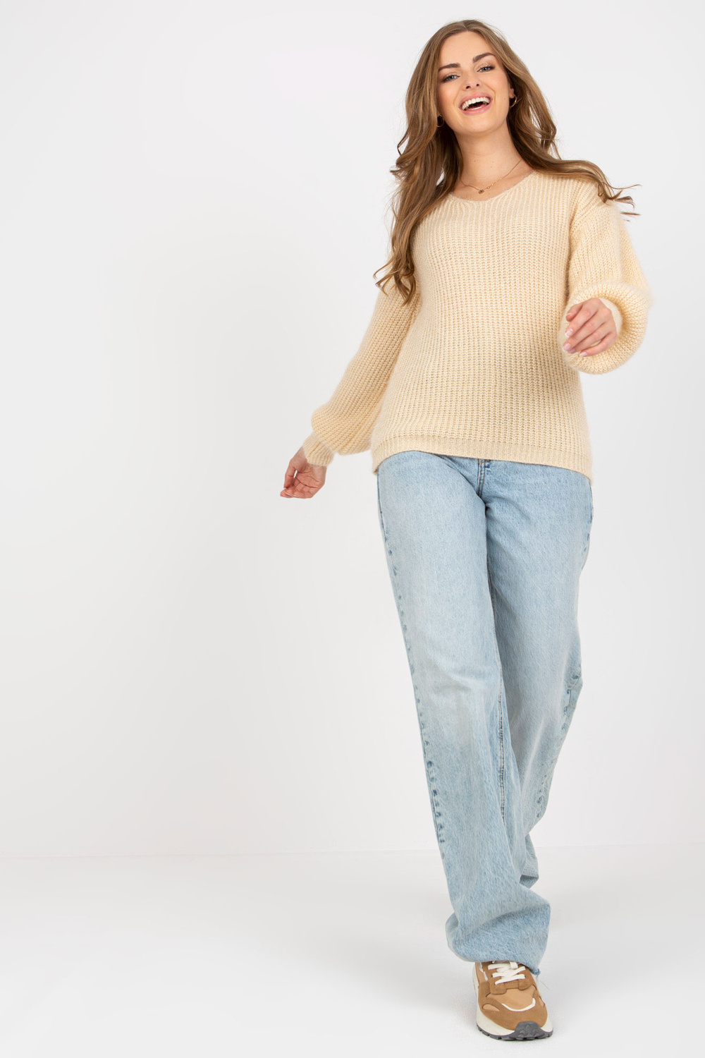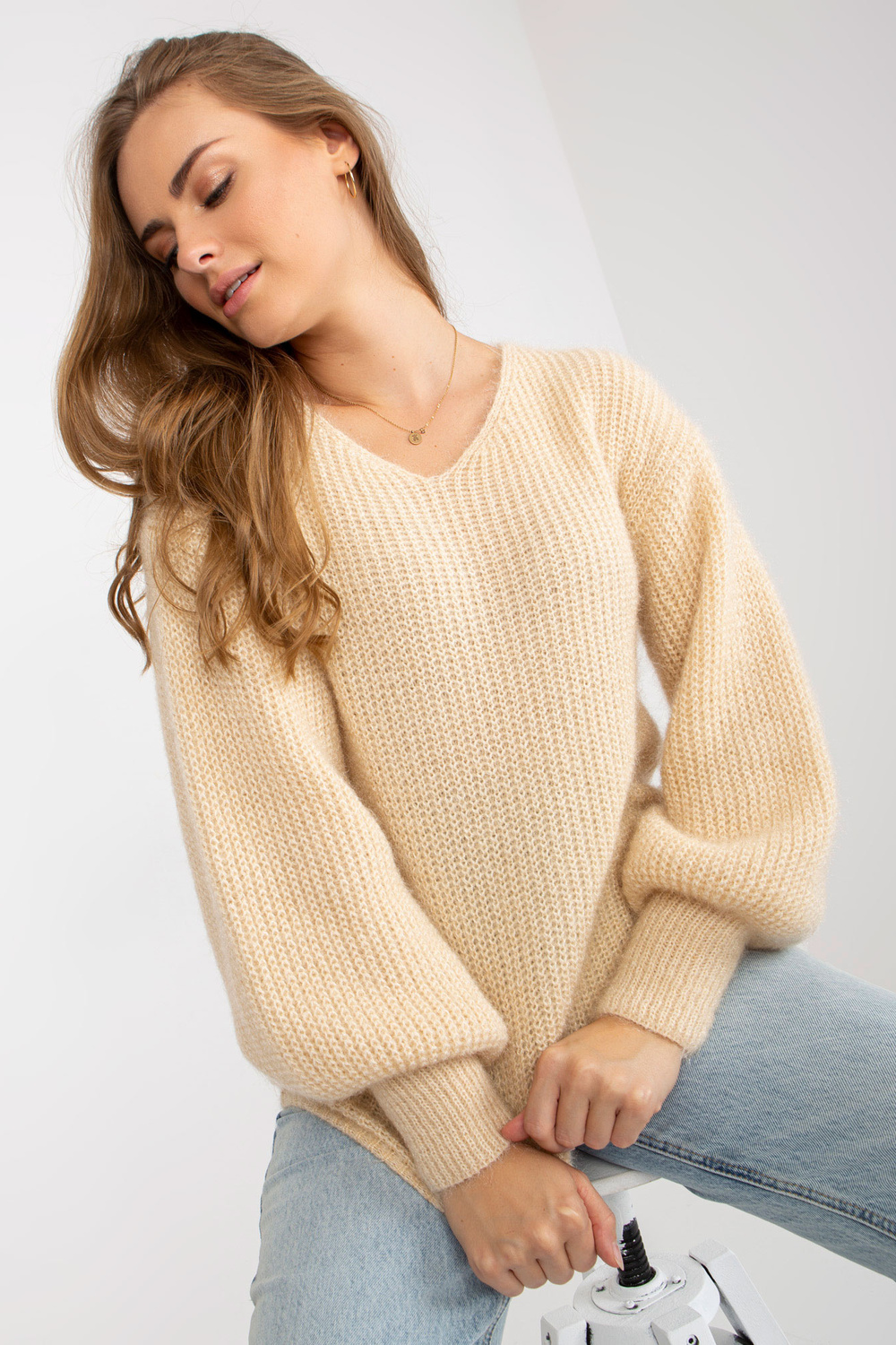 Smėlio spalvos klasikinis megztinis su V iškirpte OCH BELLA .