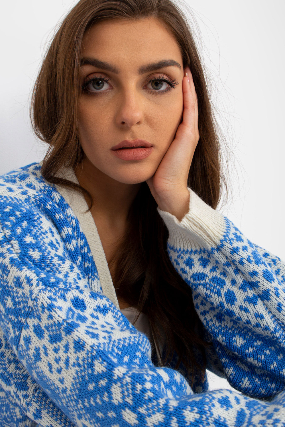 Baltos ir mėlynos spalvos moteriškas megztinis RUE PARIS .
