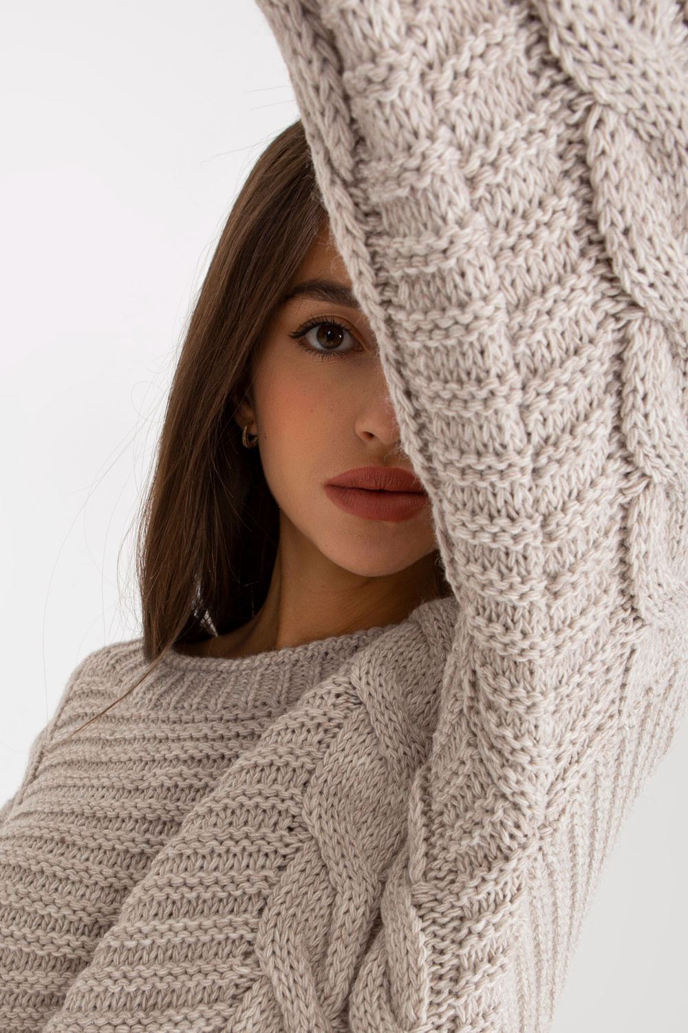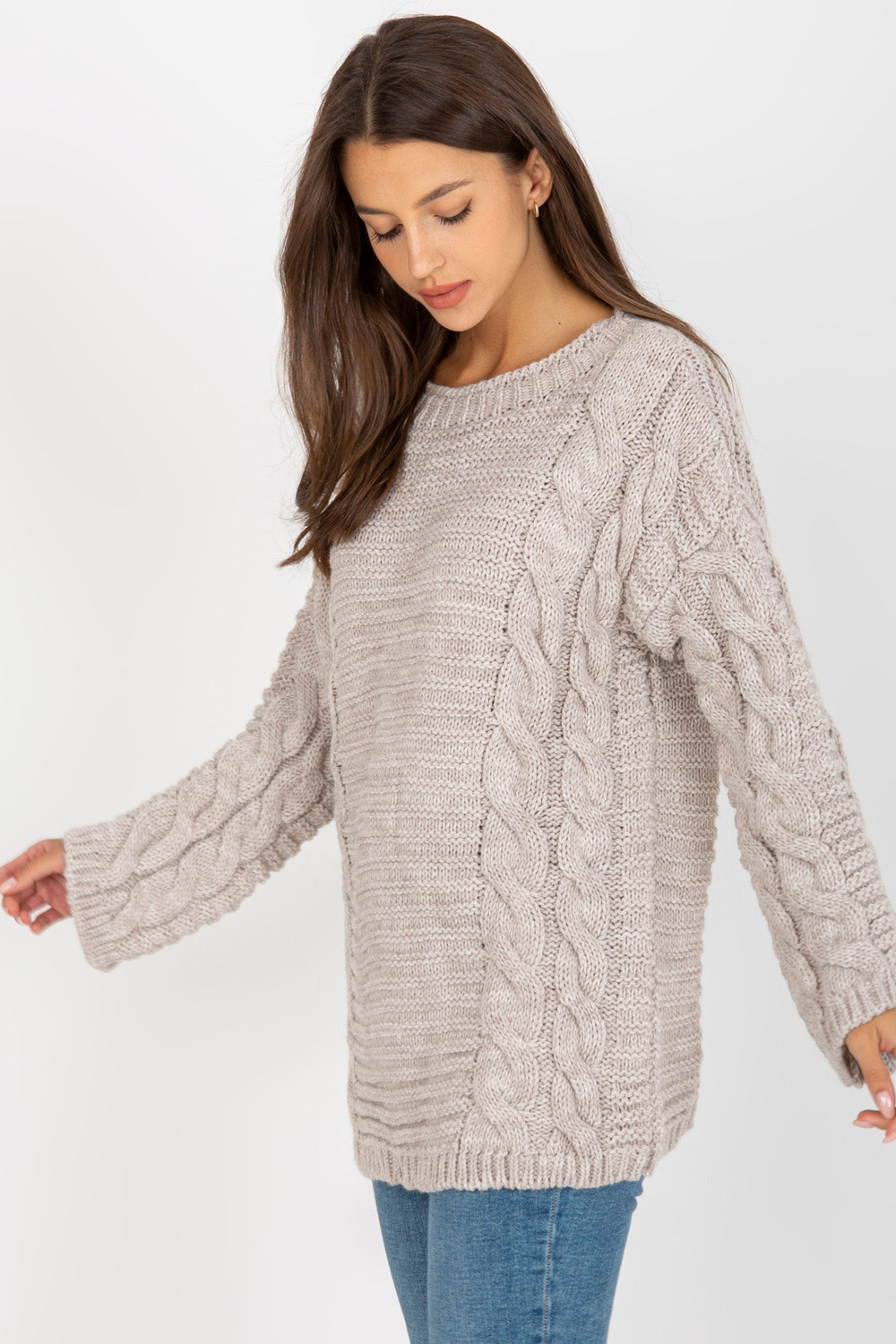 Šviesiai smėlio spalvos megztinis su didelėmis pynėmis RUE PARIS .
