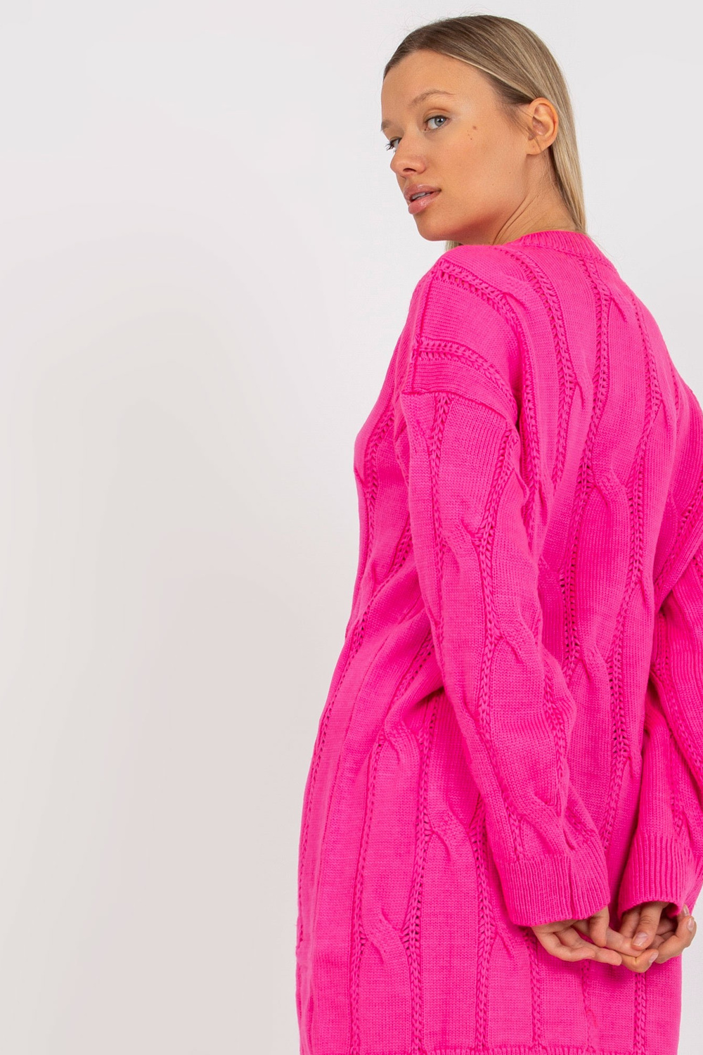 Modelis dėvi vieno dydžio dydį. Modelio matmenys: aukštis 178 cm, krūtinė 89 cm, juosmuo 65 cm, klubai 95 cm.